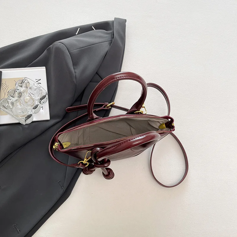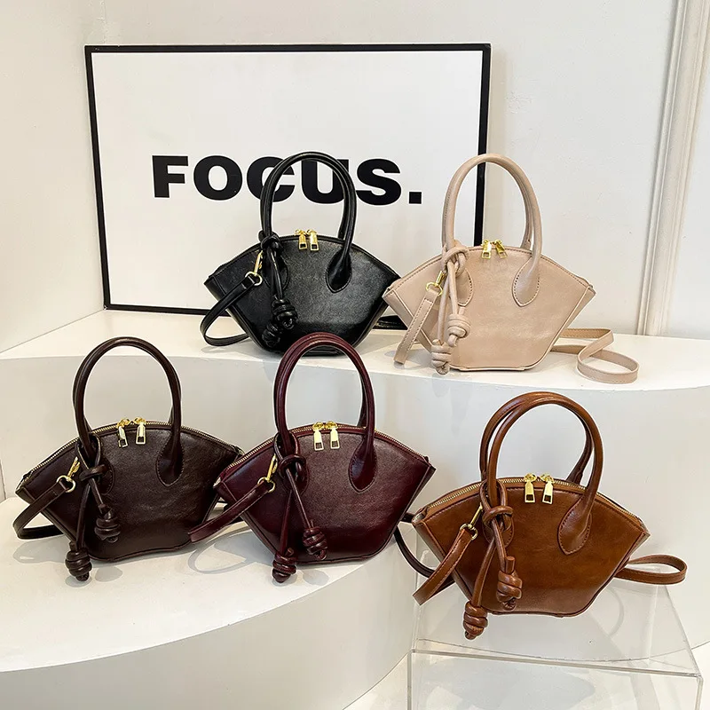 Trendy Fan Shaped Faux PU Leather Handbag Women's Stylish Top Handle Crossbody Purse for Daily