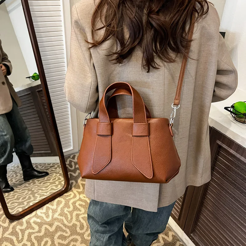 Designer Vintage Popular Ladies Women Crossbody Shoulder Hand Bags Fashion Casual Large Capacity Cowhide Leather Bucket Bag 2026