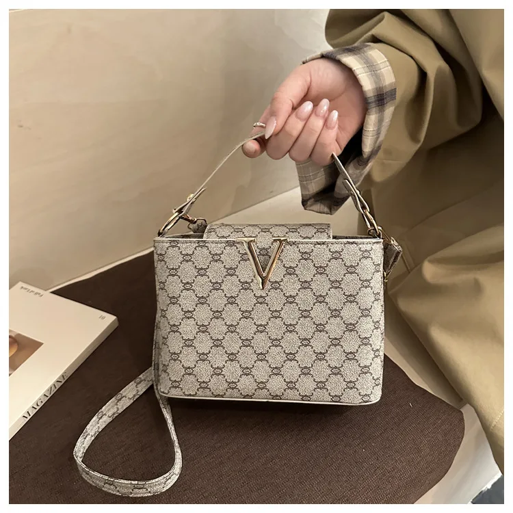 Classic Pattern Ladies Top Handle Designer Bag V-Embellished Casual Crossbody Handbags 2026