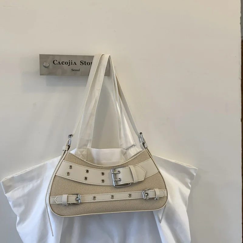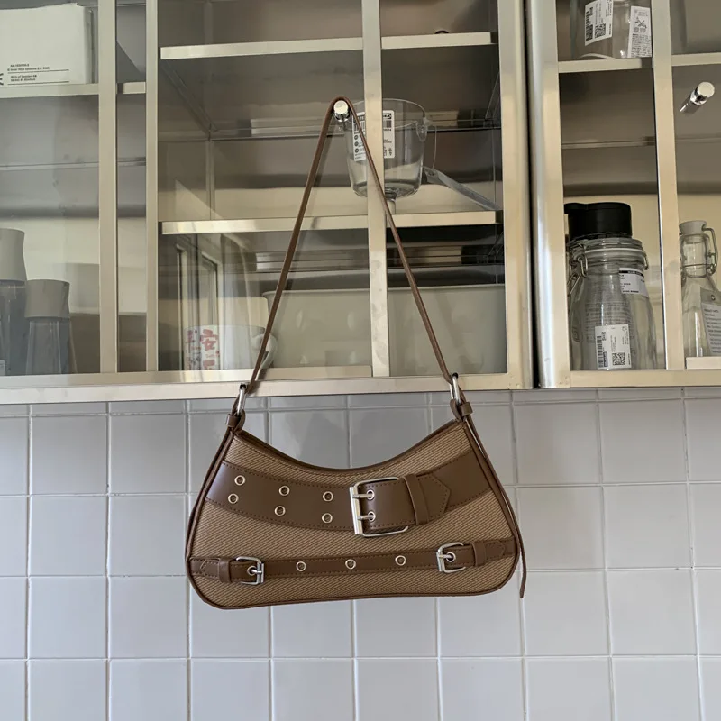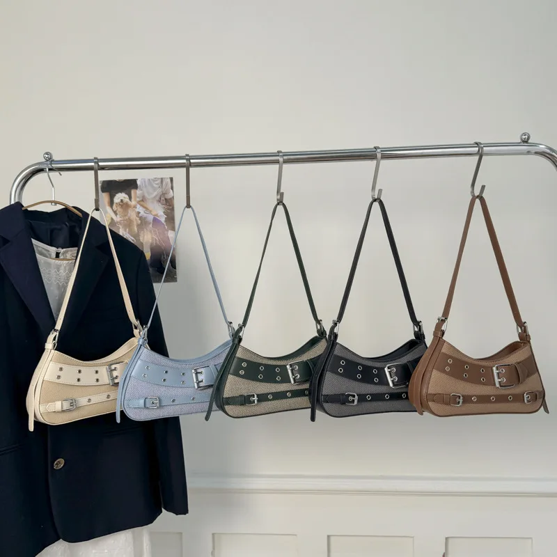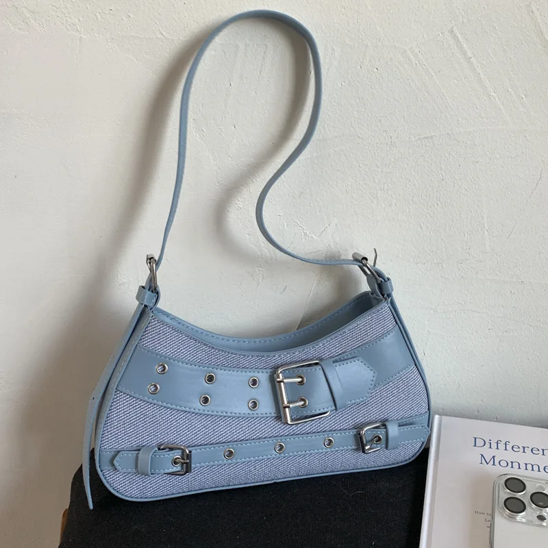 Fashion Light Blue Pu Leather Shoulder Bag Buckle Design Underarm Purse Hand Bags for Women