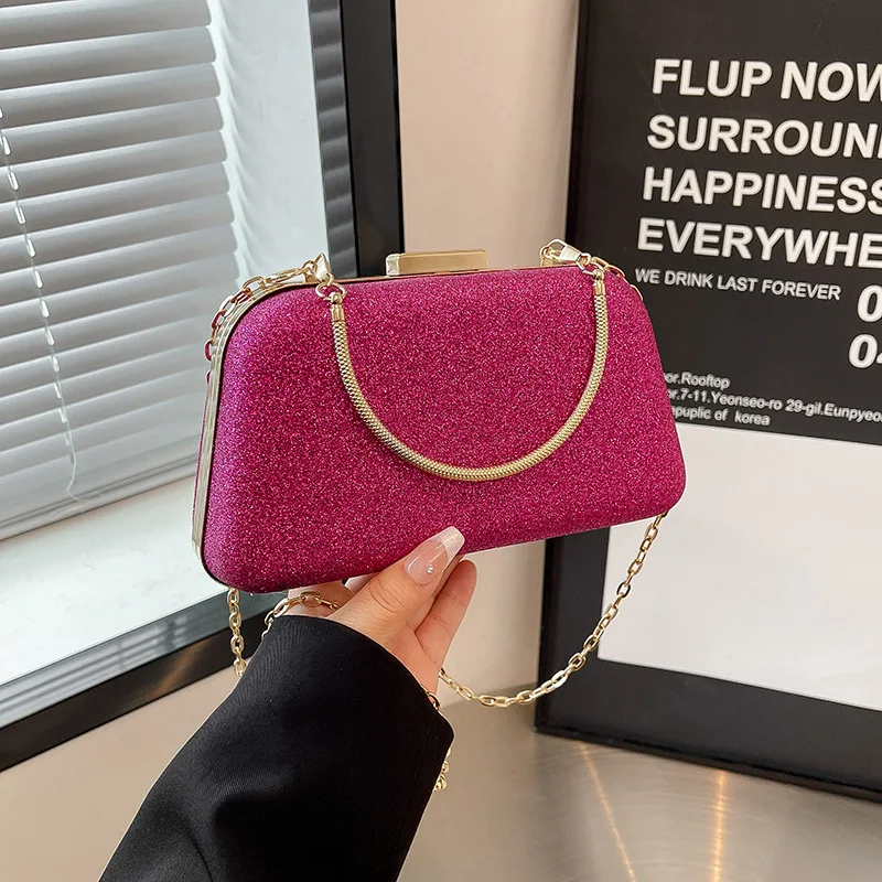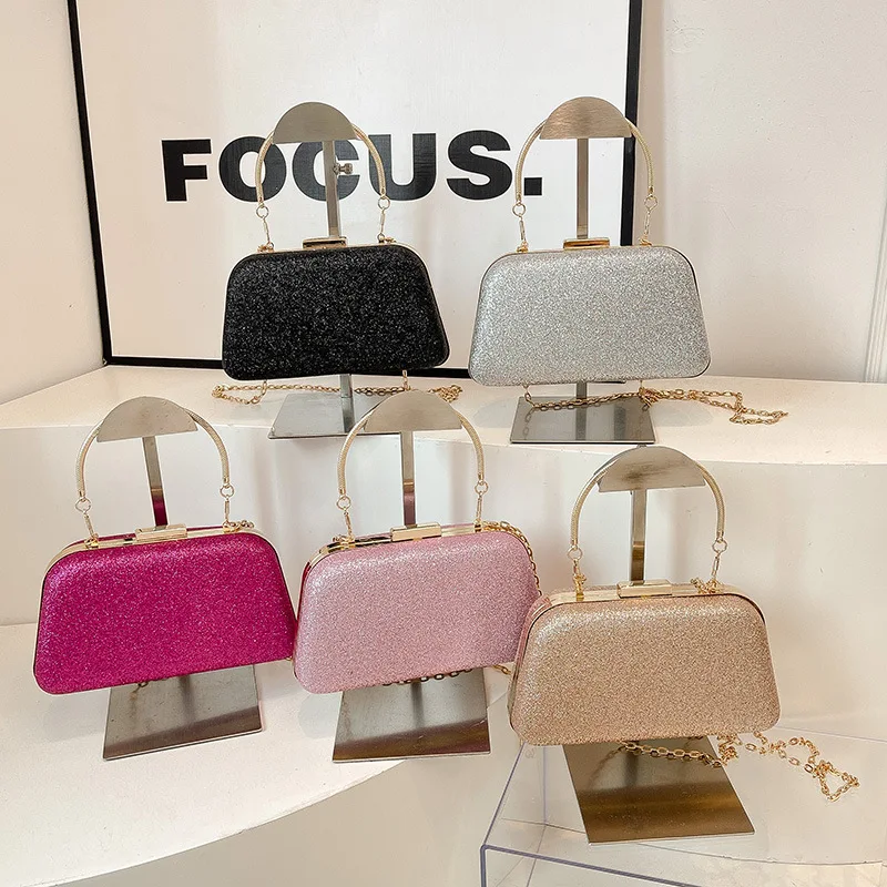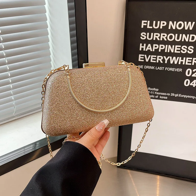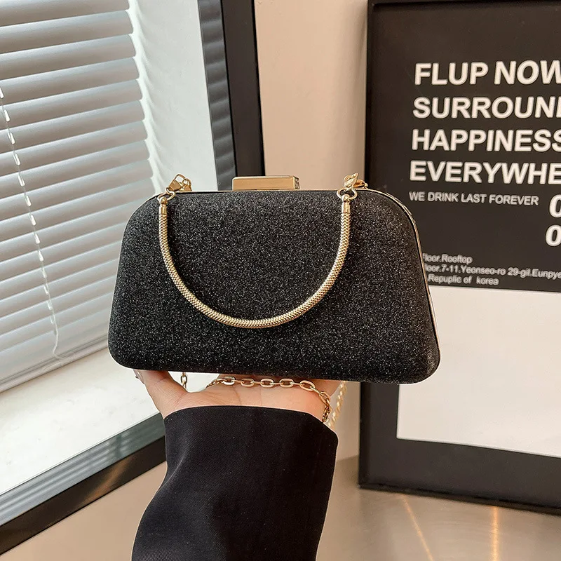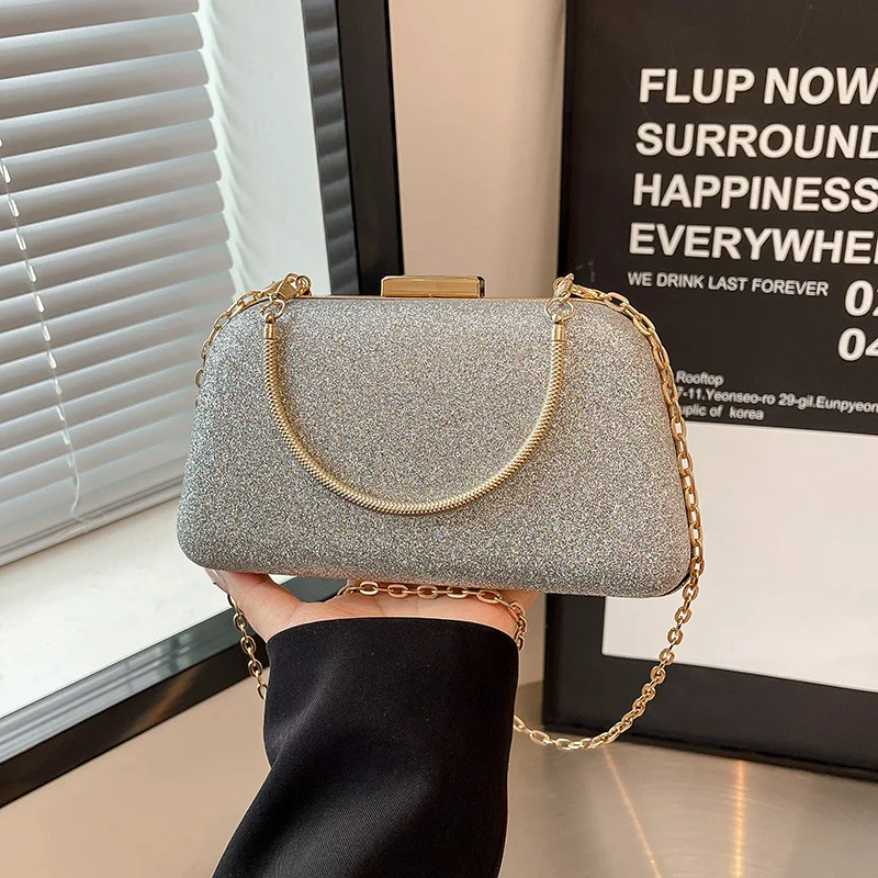 New Glittery Vintage Evening Bag for Women Shiny Clutch Purse Design Shoulder Bags with Metal Handle