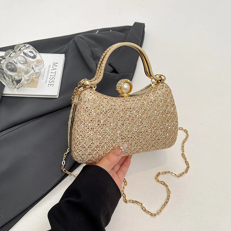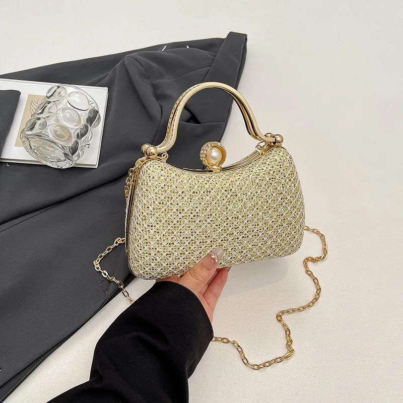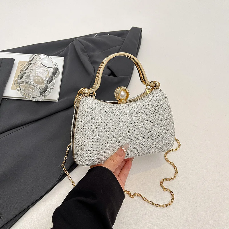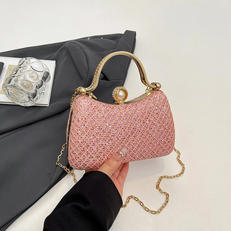 Beaded Handle New Evening Handbag for Women Luxury Design Fashion Mini Top Handle Clutch Shoulder Bags with Chain Strap