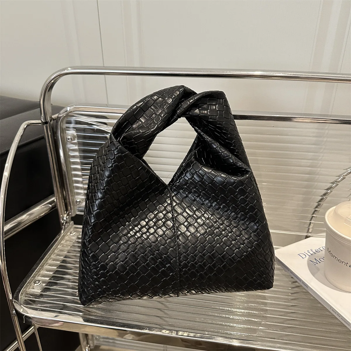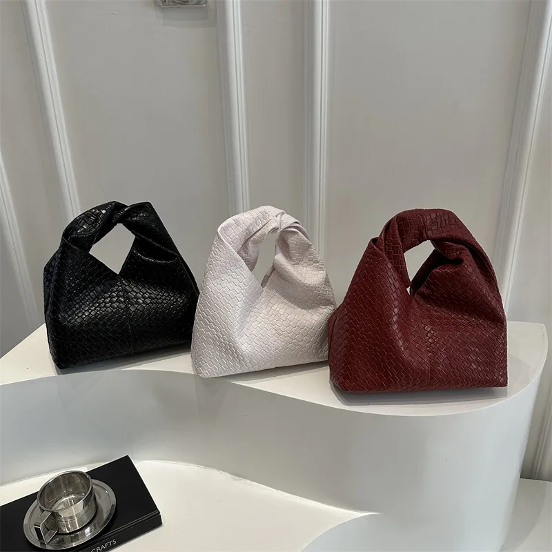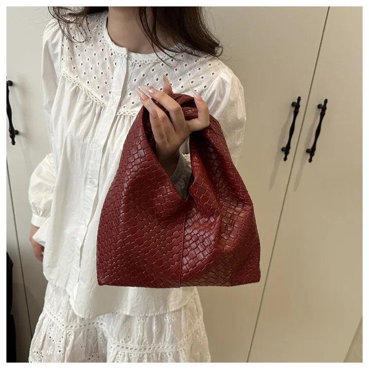 Niche Woven Design Hand Bag for Women Luxury Textured PU Leather Large Capacity Shoulder Bag Top Handle for Daily Outing