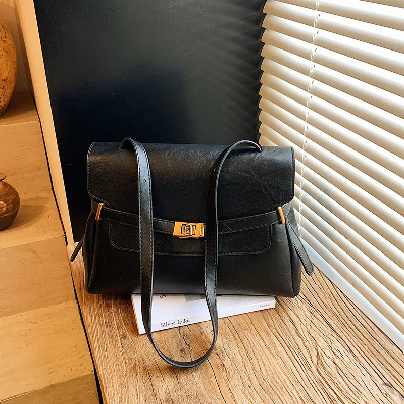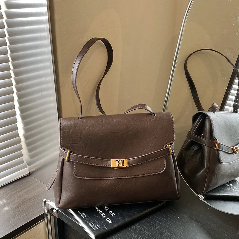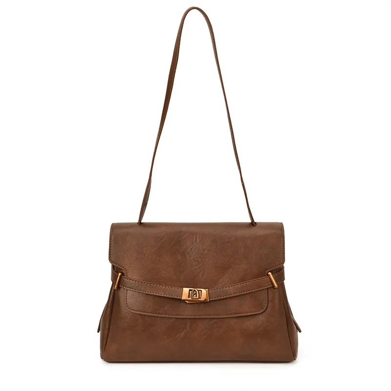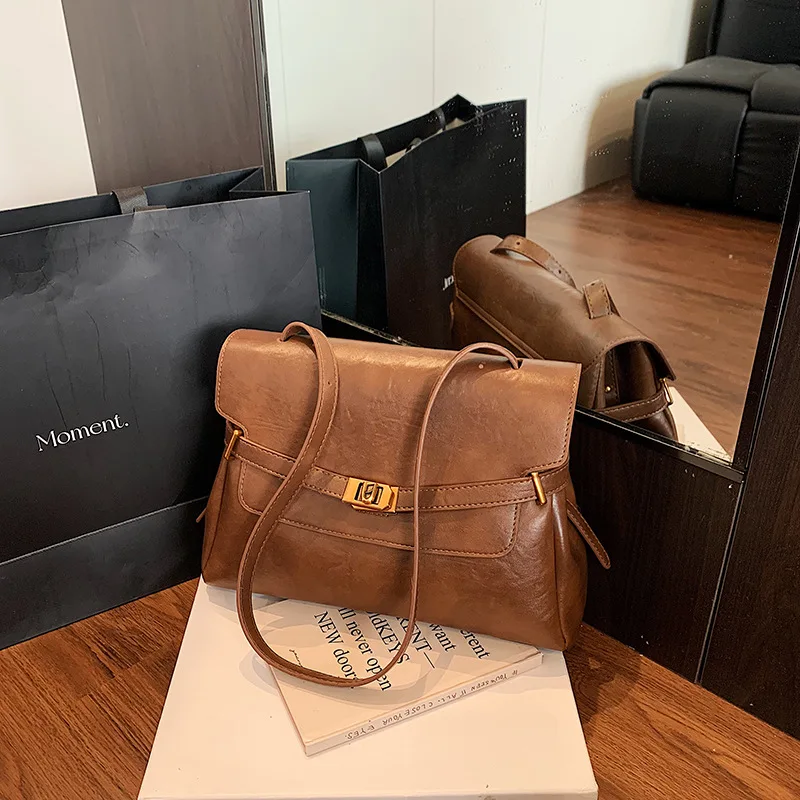 2026 Vintage Large Size Women's Crossbody Shoulder Bag PU Leather Flap Style with Metal Lock Totes