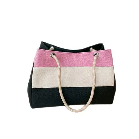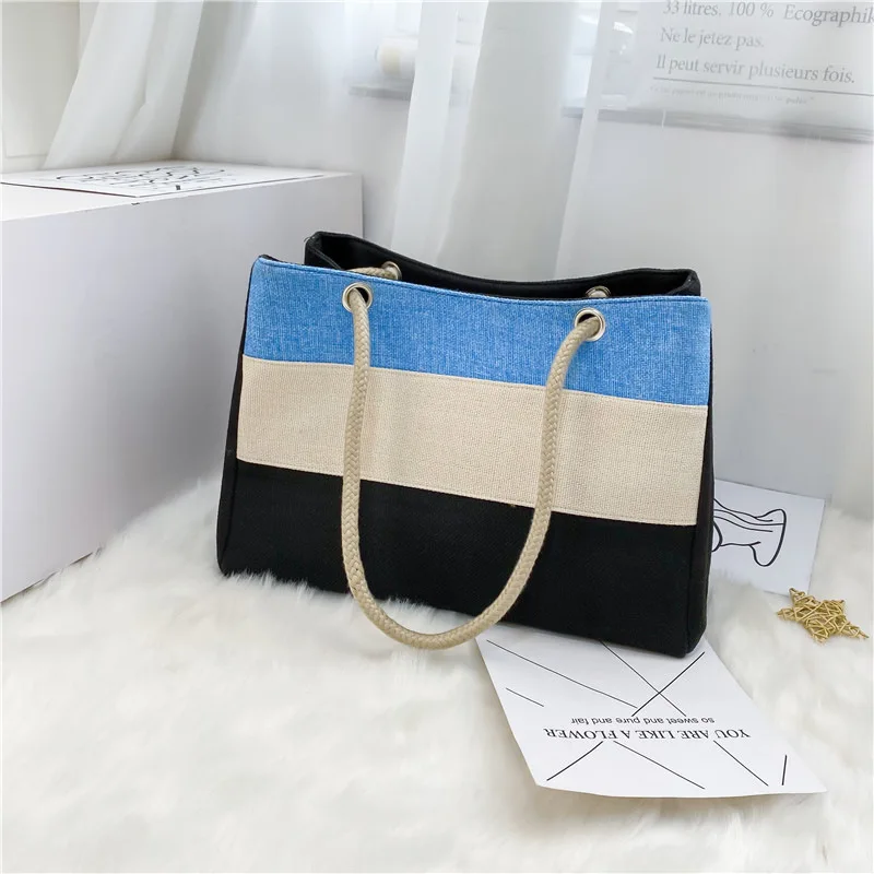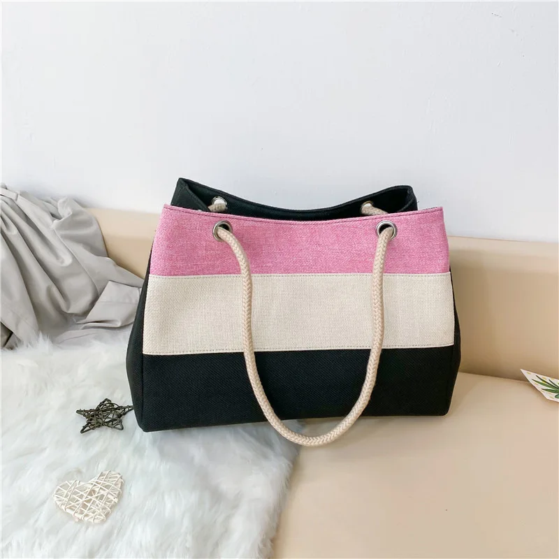 2026 New Fashion Women's Canvas Tote Bag Large Capacity Rope Handle Striped Casual Shoulder Handbag for Shopping