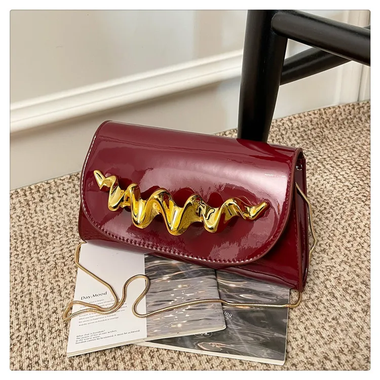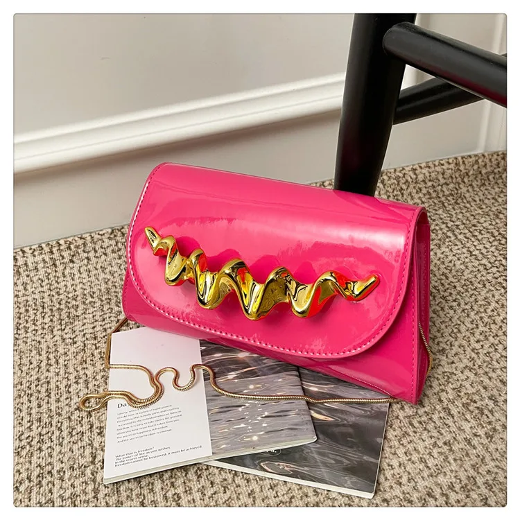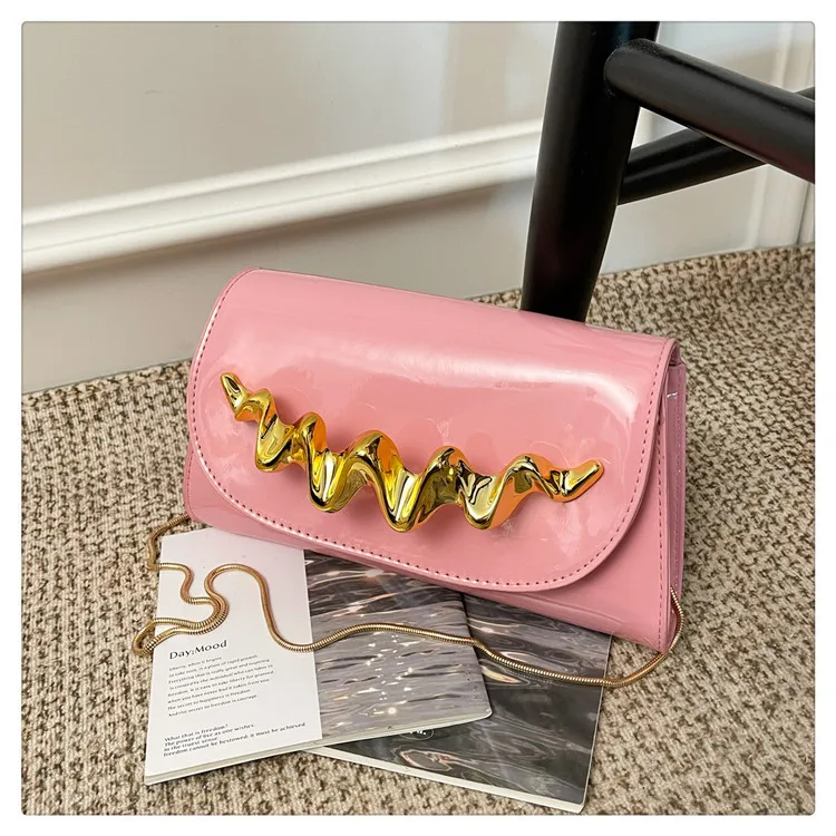 Candy Color Women's Flap Shoulder Bag New Trendy Gold Embellished PU Handbag for Girls