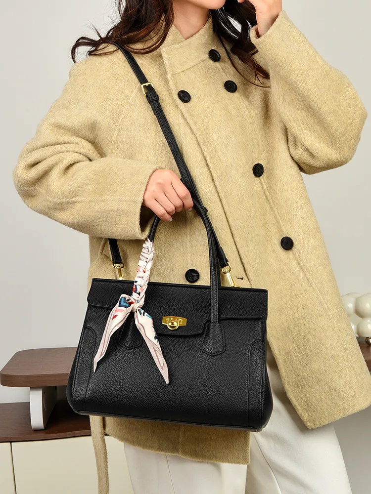 2026 New Luxury PU Leather Tote Bag for Women Top Handle Satchel with Scarf Decoration