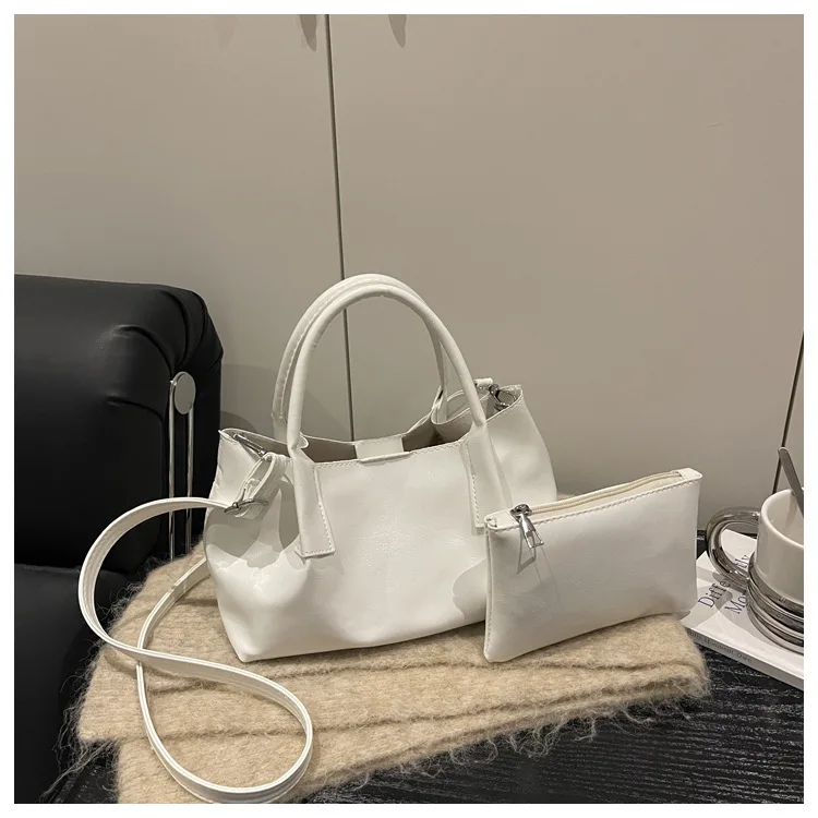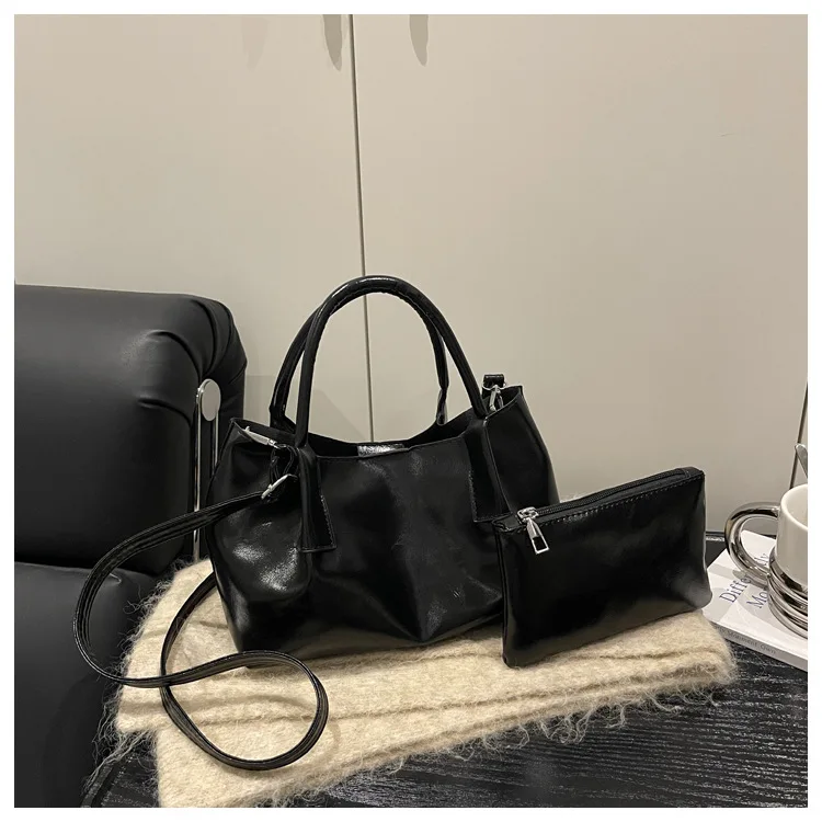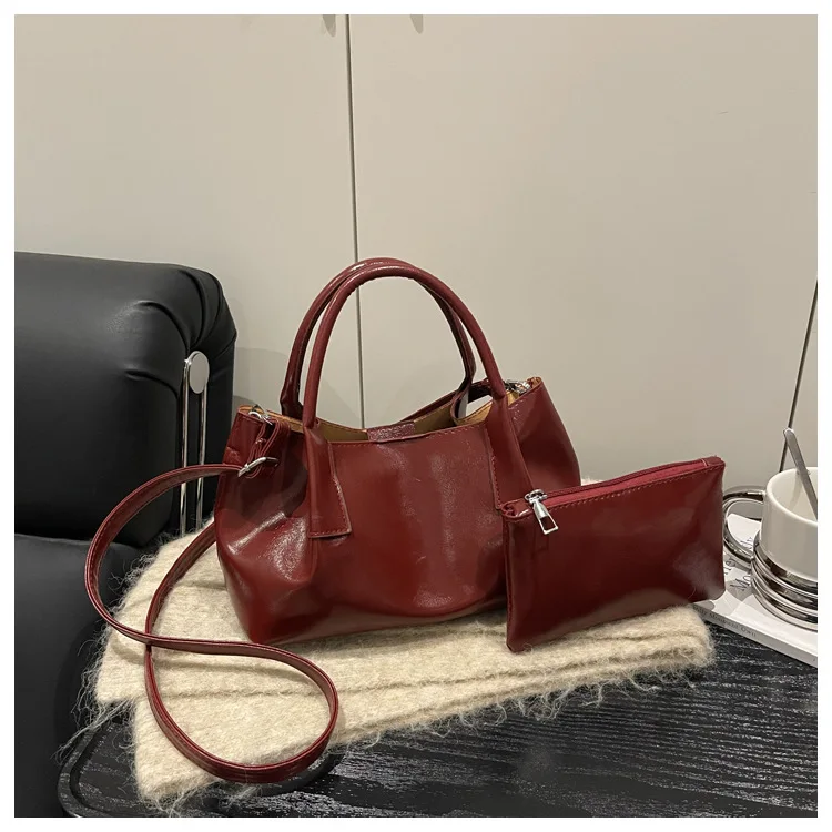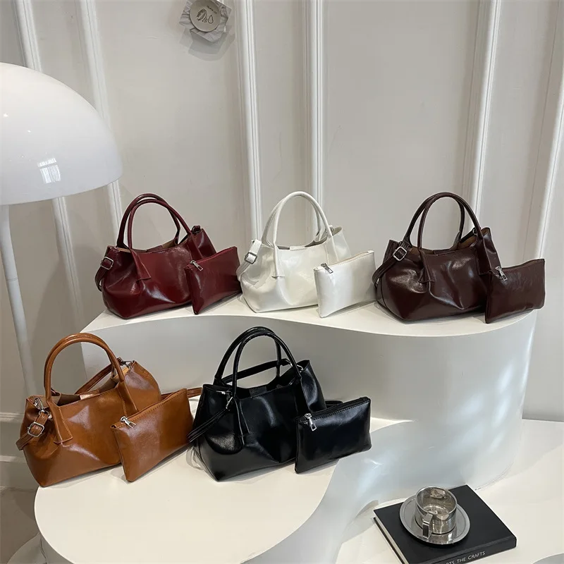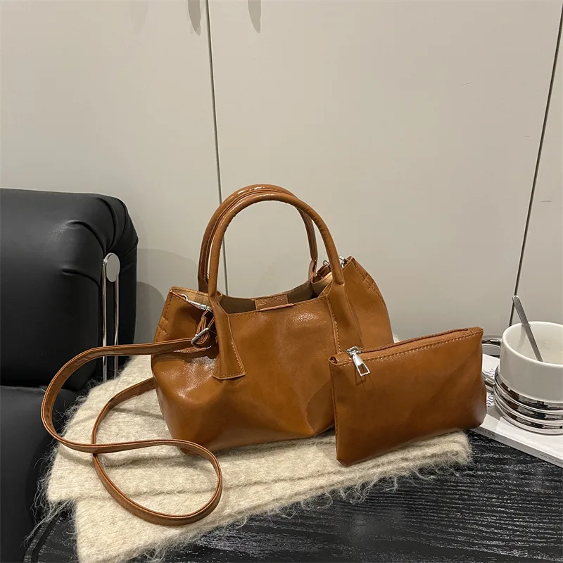 Women's Retro Brown PU Leather Handbag 2pieces Set 2026 New Luxury Shoulder Crossbody Shoulder Bags with Small Purse
