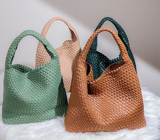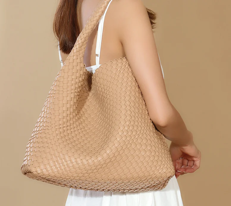 A-436 Large Capacity Korean Style Casual Fashion Handwoven Women's Zipper Tote Bag Waterproof Wholesale Woven Shoulder Bag