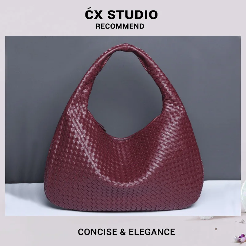 A-431 2026 Handwoven Women's Shoulder Bag New Crescent Moon Design Fully Handmade Zip Versatile European American Style Dumpling