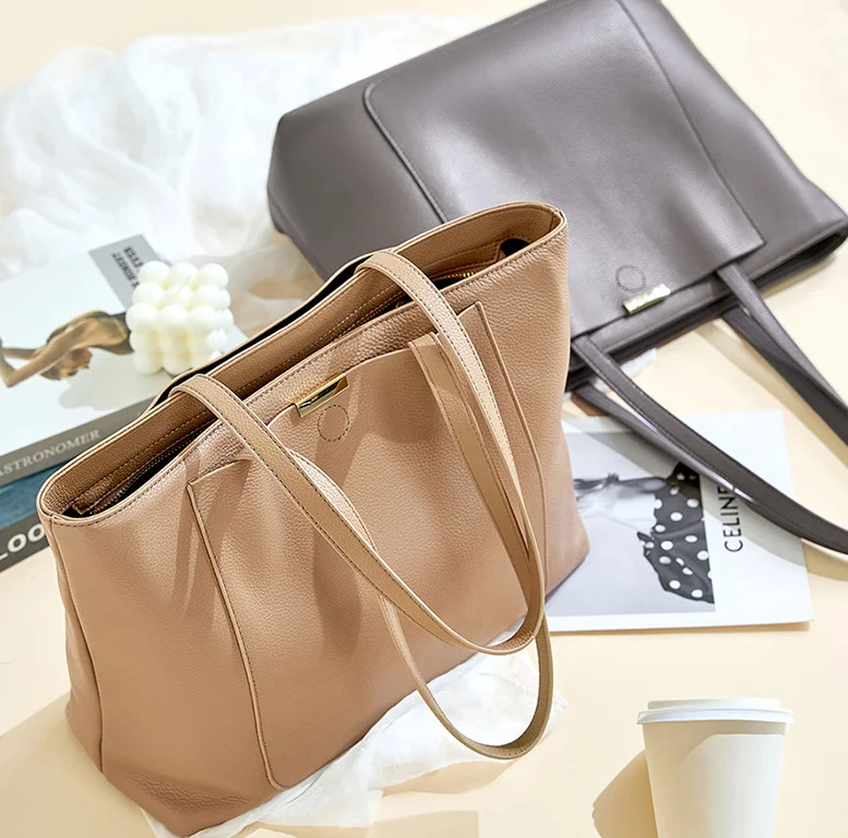 2026 A-281 High-Class Women's Genuine Leather PU Tote Bag Large-Capacity All-Match One-Shoulder Handbag with Zipper Closure