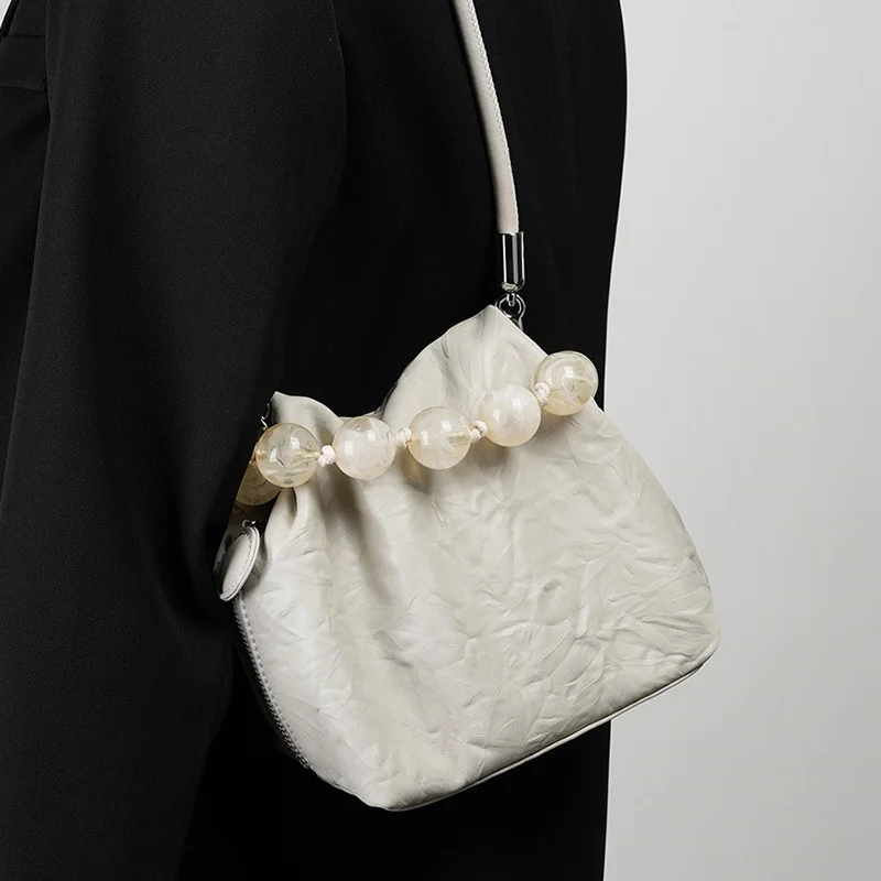 A-236 Women's Handheld Cowhide Crossbody Bag New Chinese Style Beaded First Layer Fashionable Handmade Women's Shoulder Bags