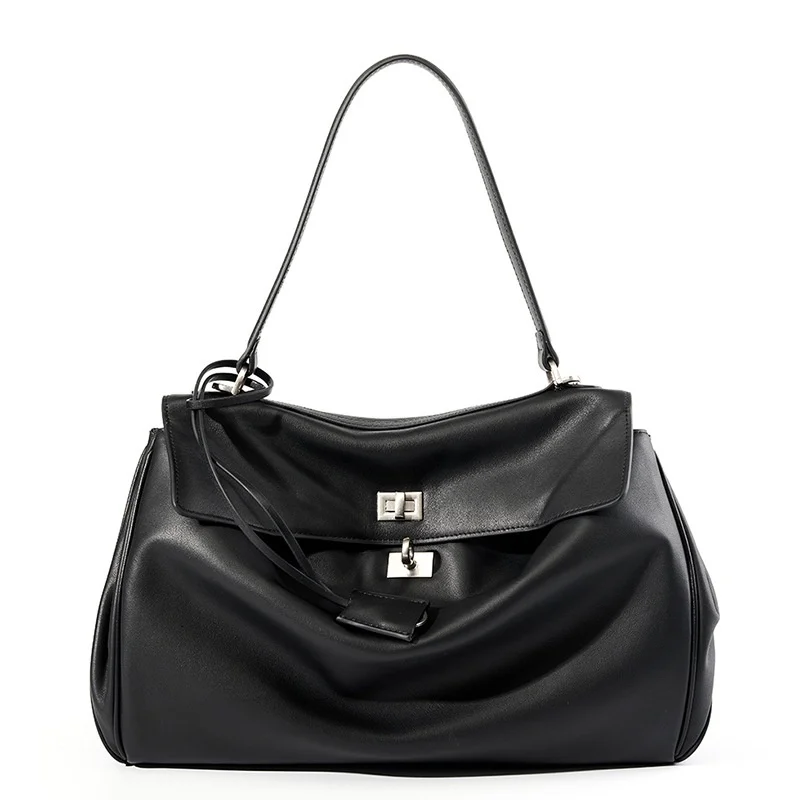 A-211 New Women's Genuine Leather Tote Bag Large Capacity Smooth Shoulder Portable Commuting Underarm Genuine Leather Woman Bag