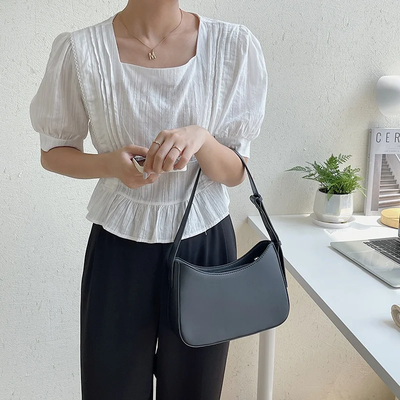 A-172 Women's Zipper Shoulder Bag Simple Niche Style Waterproof PU Armpit Handbag for Work New Fashionable Messenger