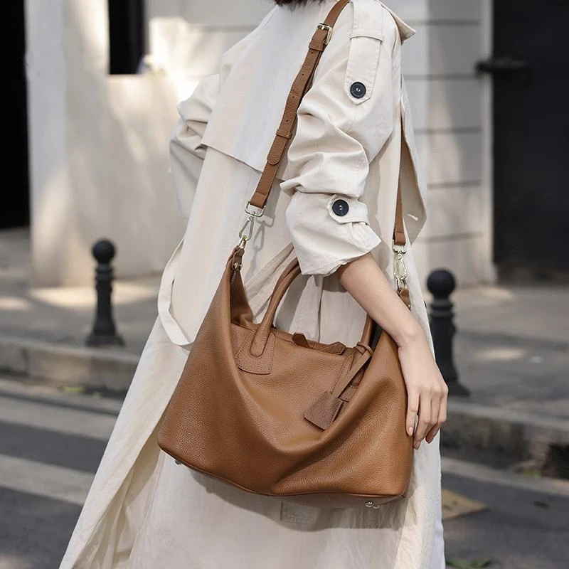 Designer Vintage Popular Ladies Women Crossbody Shoulder Hand Bags Fashion Casual Large Capacity Cowhide Leather Bucket Bag 2026