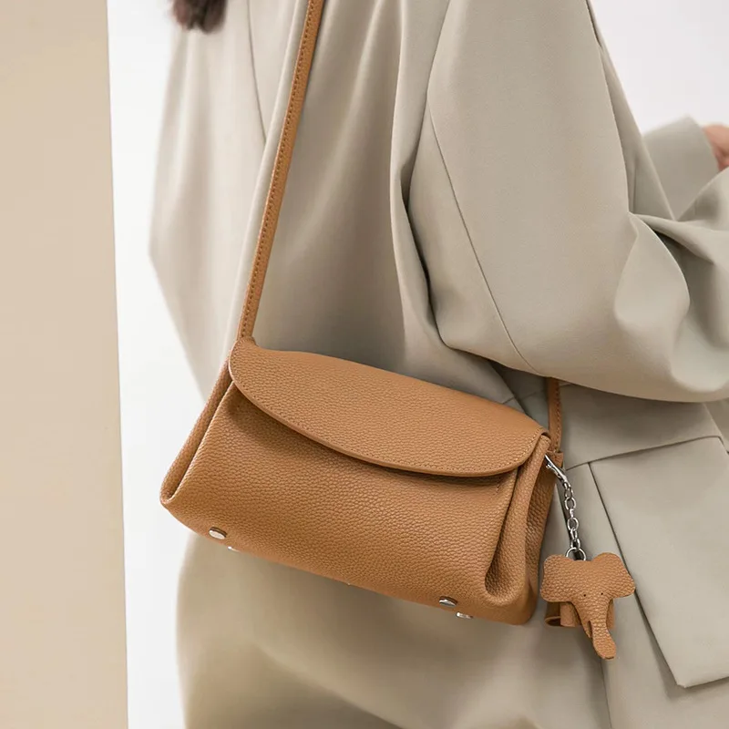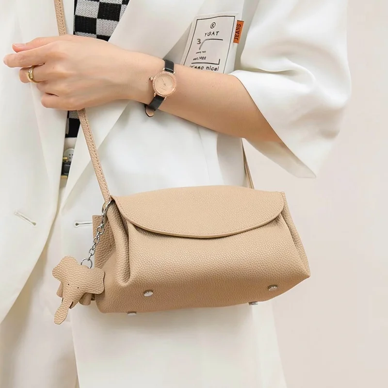 A-149 Genuine Cowhide Leather Crossbody Bag for Women High-End Niche Small Square Shoulder Bag Polyester Lining Fashionable