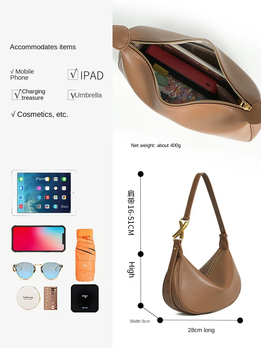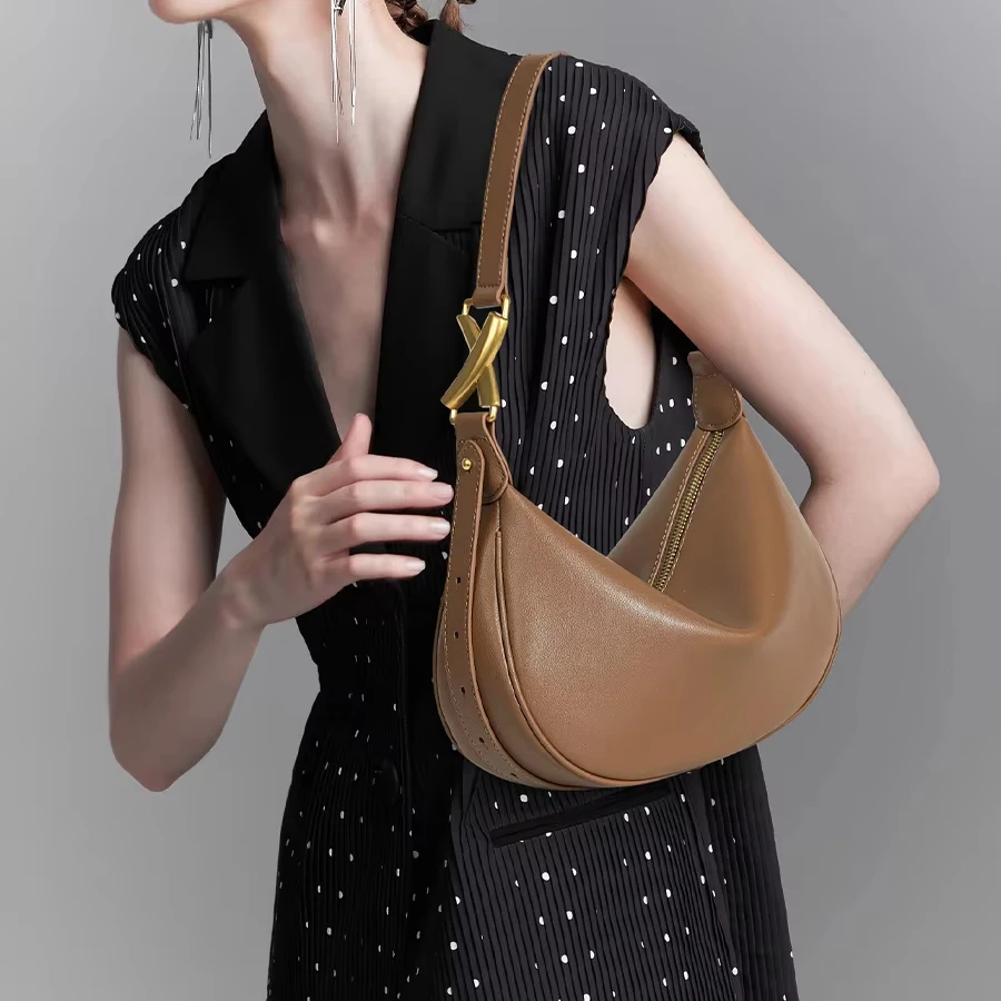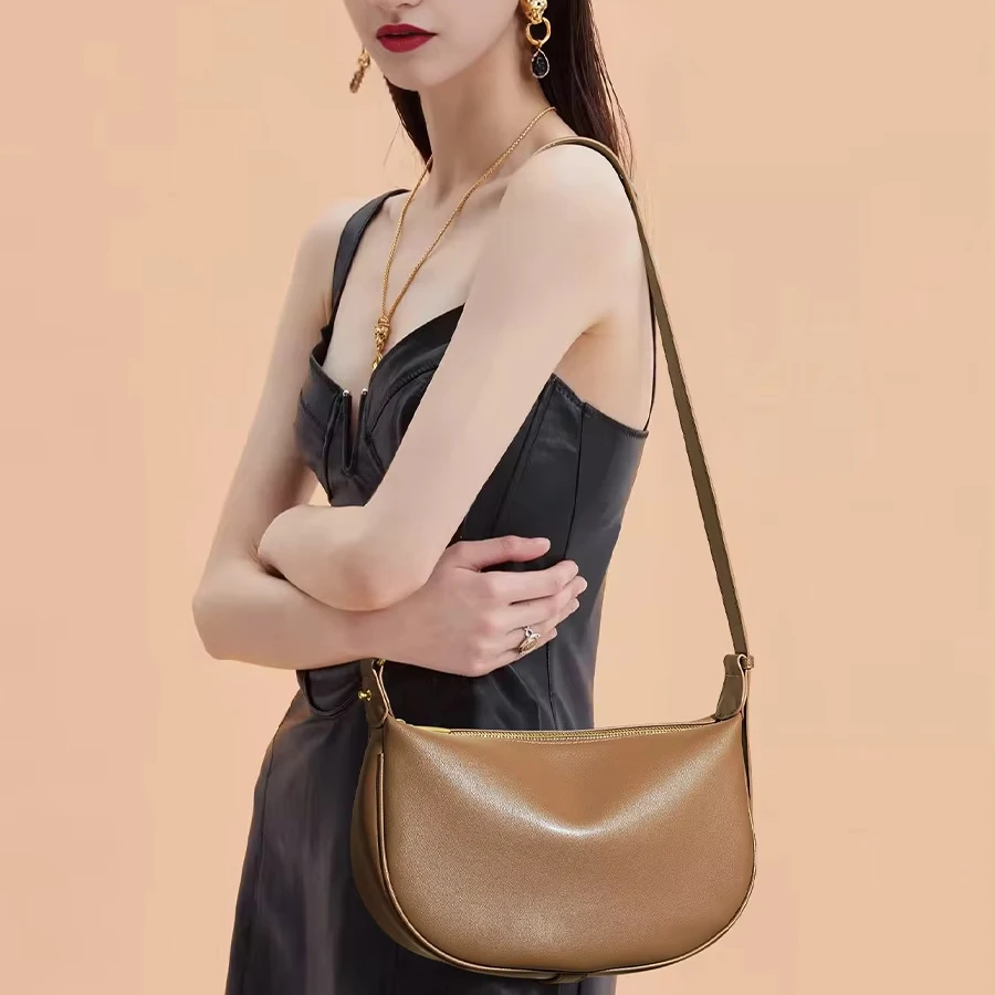 A-124 Women's High-Class Large-Capacity Genuine Cowhide Leather Crossbody Fashion Bag New Arrival Underarm Zip Polyester