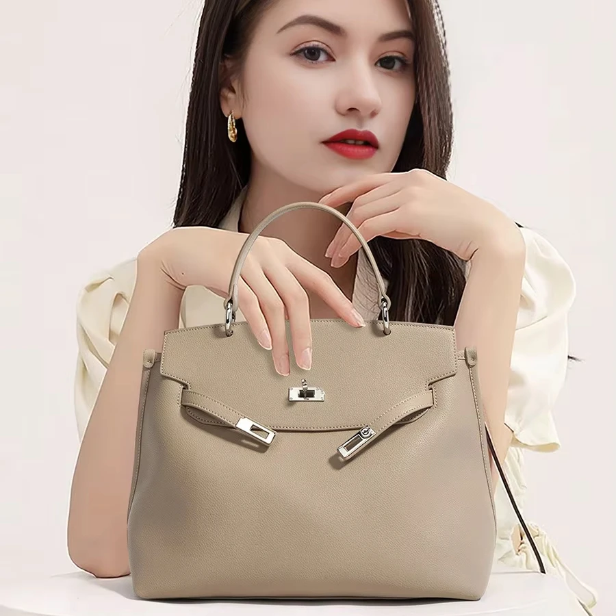 A-115 High-Grade Genuine Leather Zipper Handbag Custom Women's Elegant Large Capacity Luxury Handbag Women