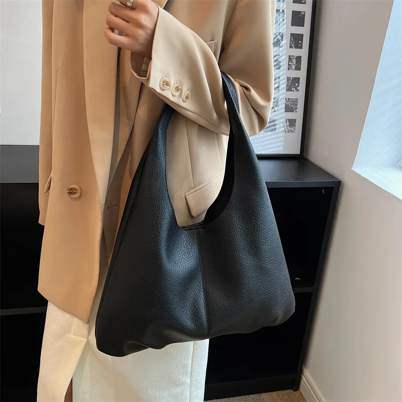 A-21 Women's Large Capacity Retro Simple Design Zip Tote Bag New Fashionable Soft Leather and Polyester Underarm Students