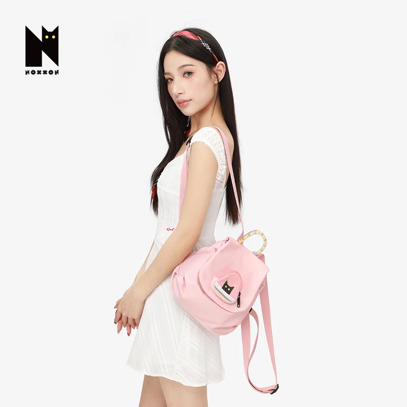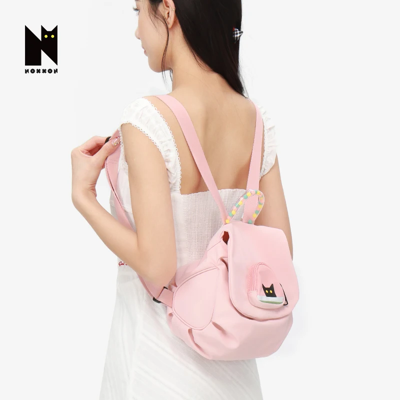 NOXXON Pink Lightweight Small Nylon Backpack Fashionable Design for School Commuting Short Trips Cute Style Student Backpack