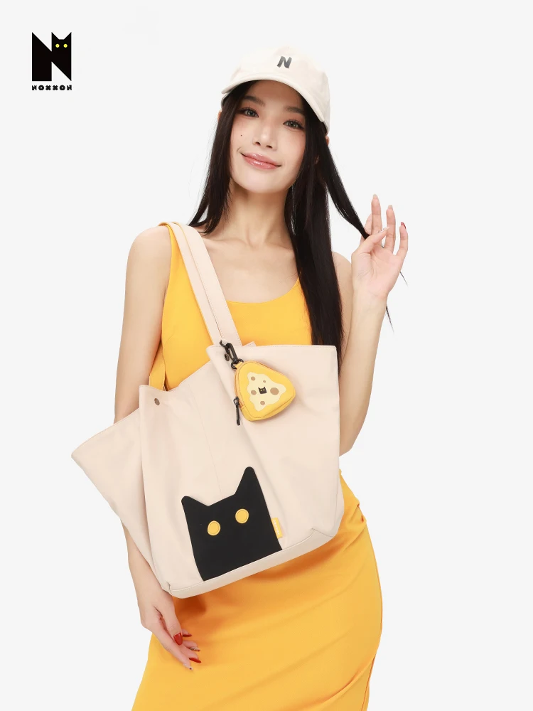 NOXXON High-End Large-Capacity Nylon Commuting Tote Bag Relaxing Style with Zipper Closure Solid Color Women Girls Toge Bag