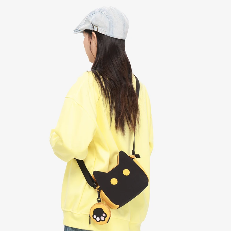NOXXON Latest Korean Style Nylon Sling Bag Contrast Color Cute Cat Shape Shoulder Crossbody Bag with Mini Coin Purse for Girls