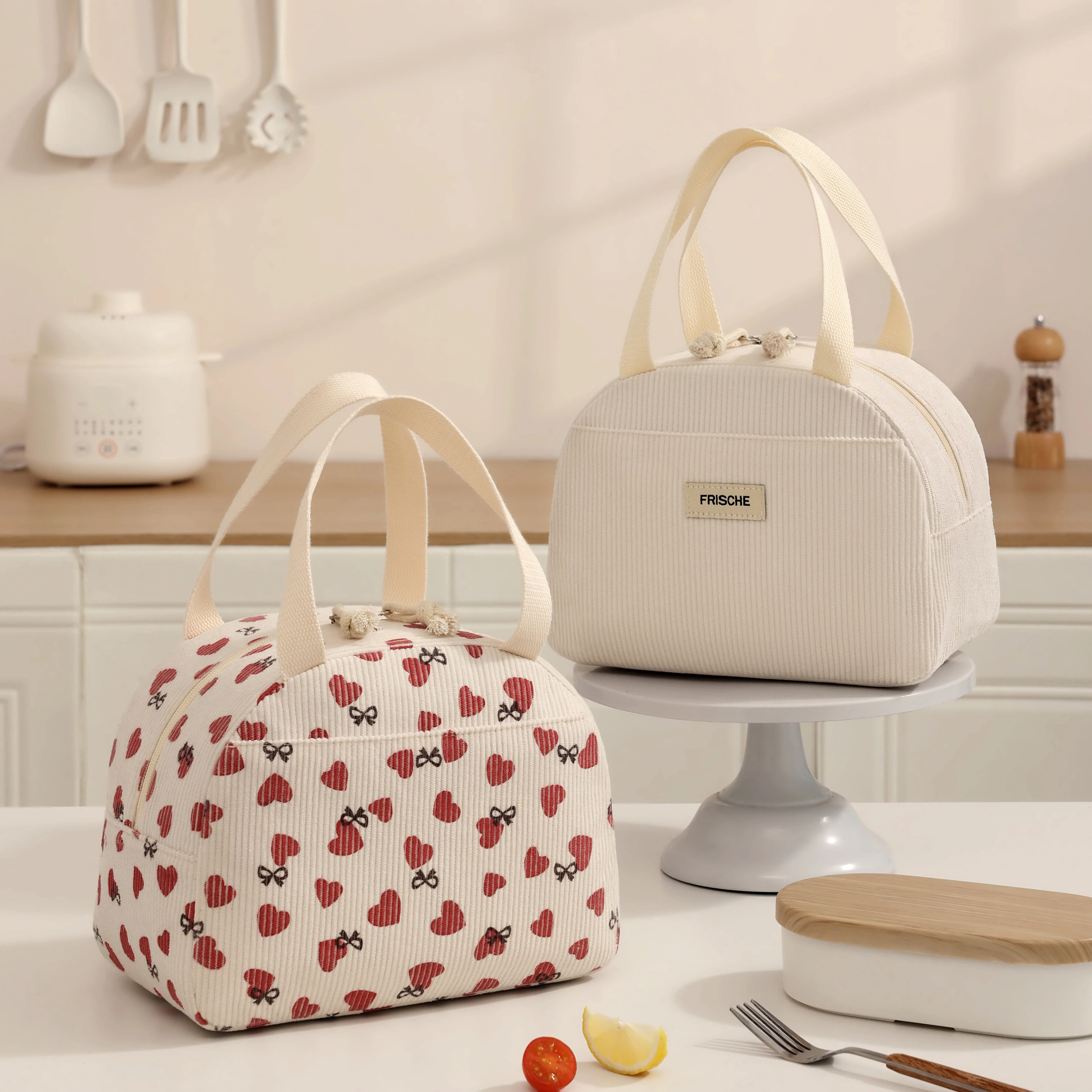 Large Capacity Corduroy Tote Bag Reusable Insulated Thermal School Work Picnic Travel Cooler Lunch Box Bag Food Drink Packing