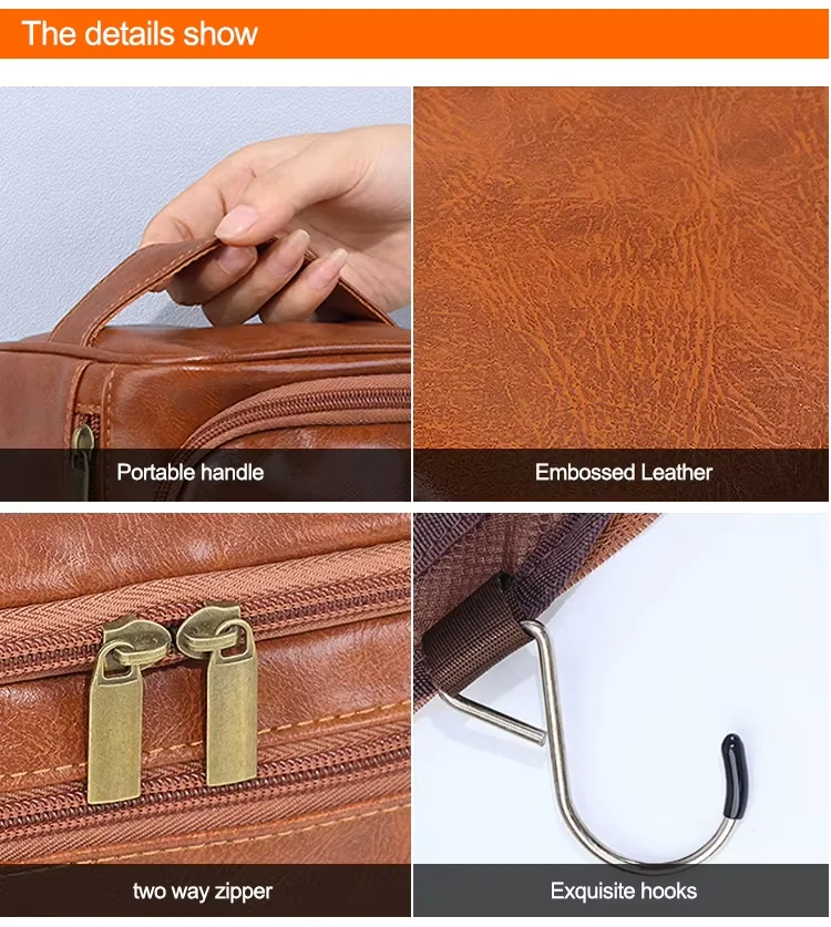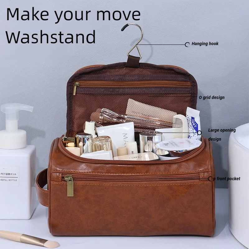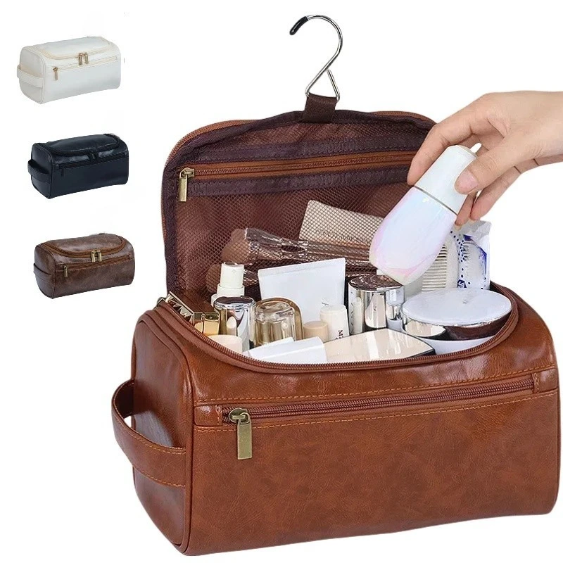 Custom Logo High Quality Pu Waterproof Travel Toiletry Bag Mens Makeup Pouch Luxury Faux Leather Cosmetic Bags for Man