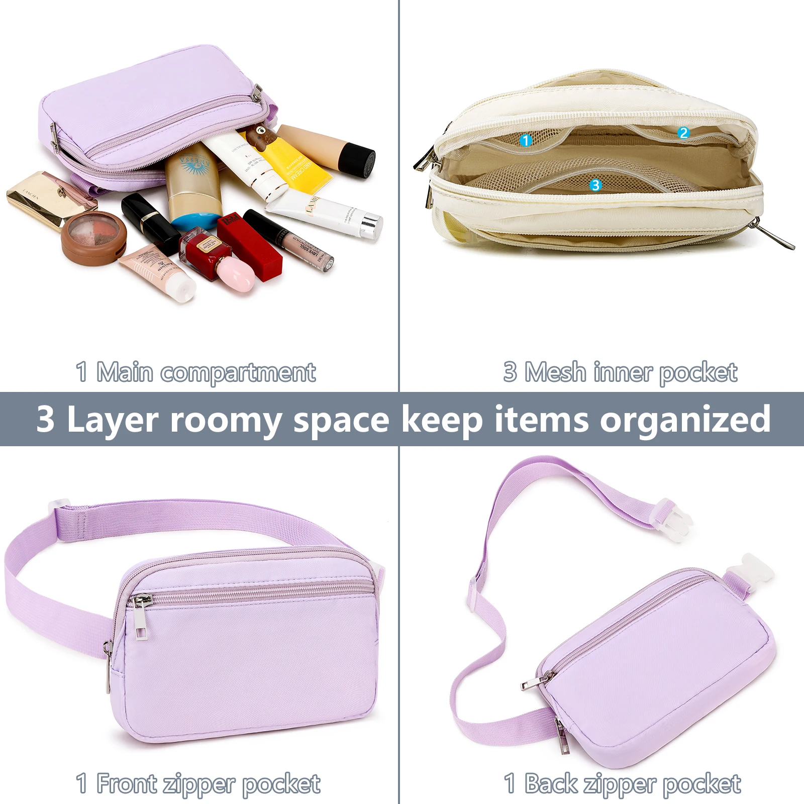 High Quality Women's Jumbo Polyester Sport Waist Bag Waterproof Nylon Crossbody Fanny Pack Logo Pattern Stylish Chest Travel