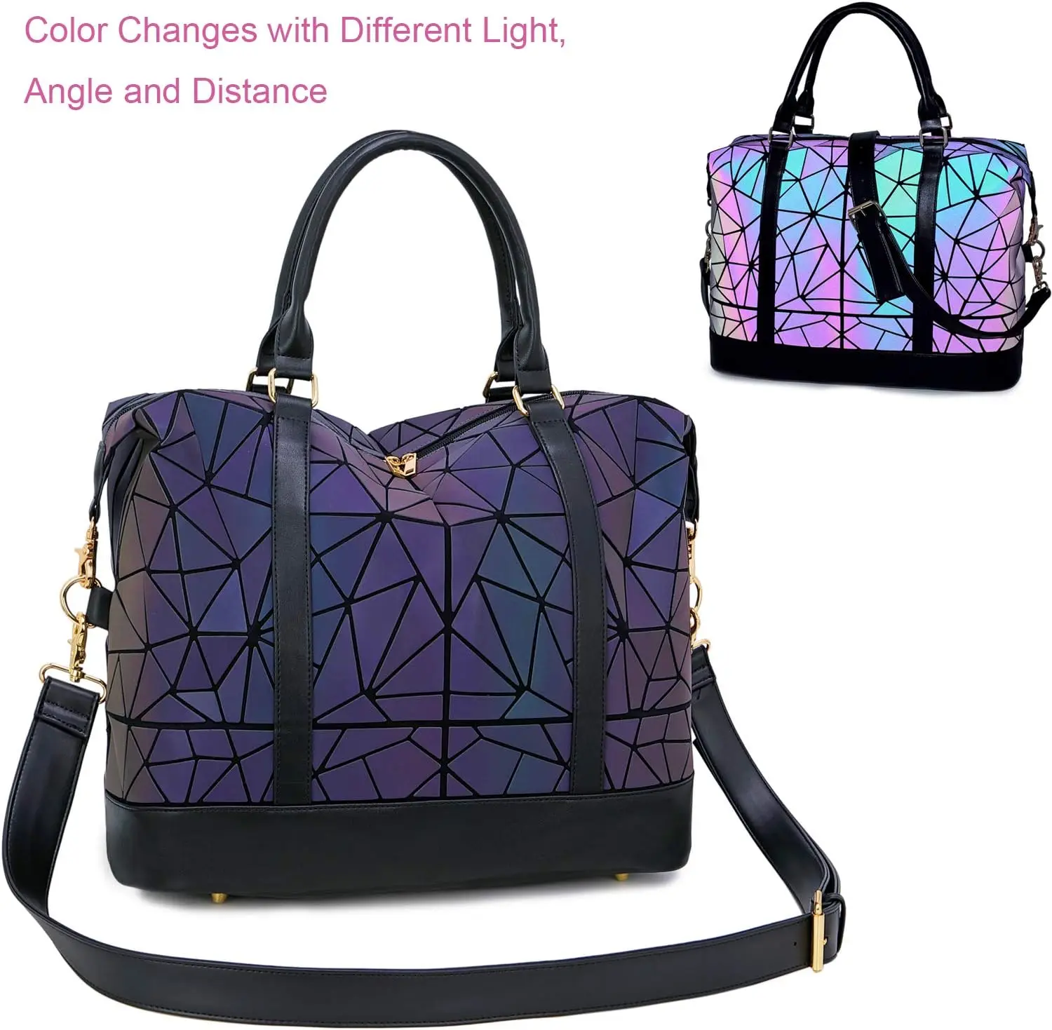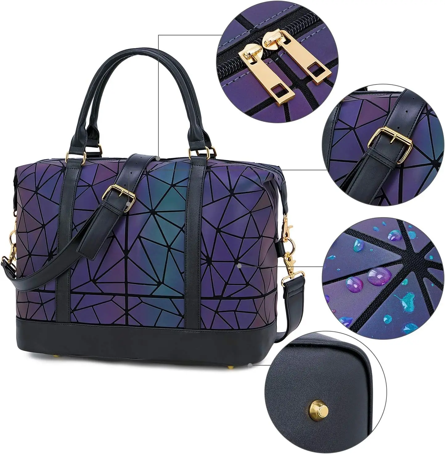Geometric Luminous Makeup Bag Travel Weekender Bag Carry on Tote Overnight Duffel for Women