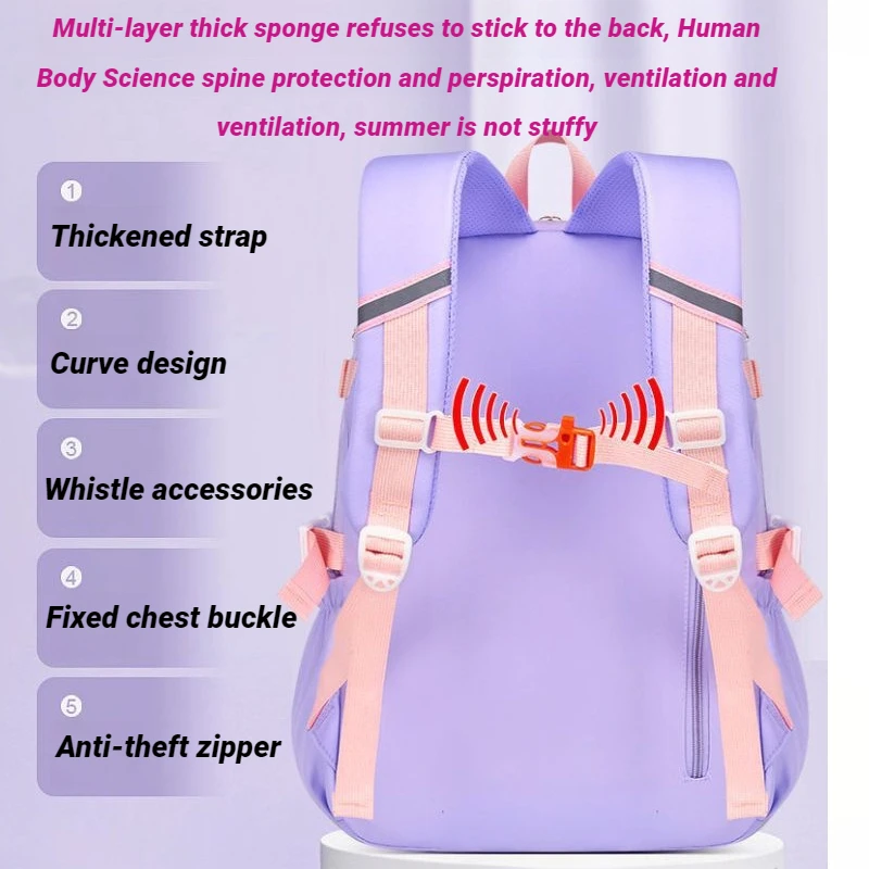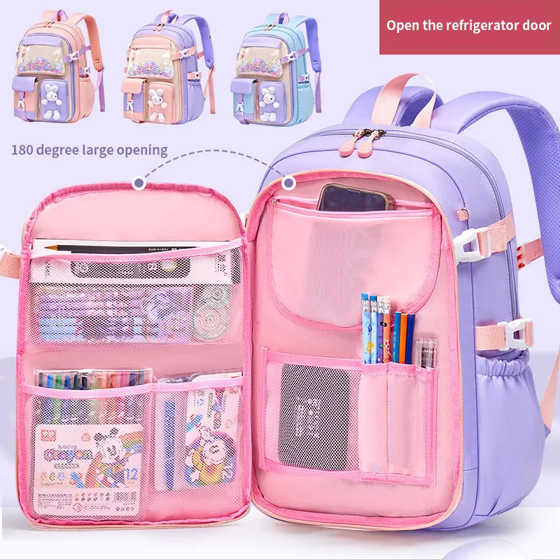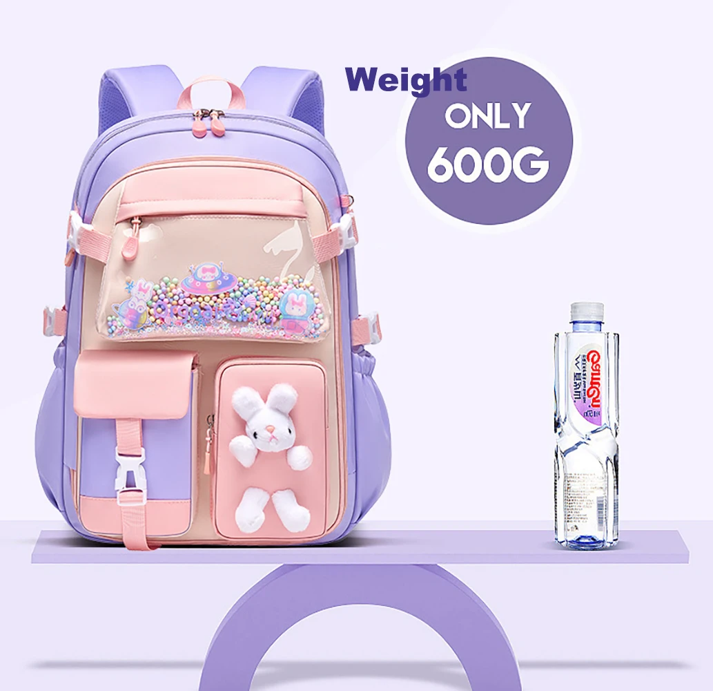 Custom Logo Large Capacity Lightweight Waterproof Girls Kids Cute Bunny Pink Purple Students Primary Book Bag Schoolbag Backpack