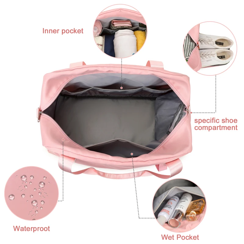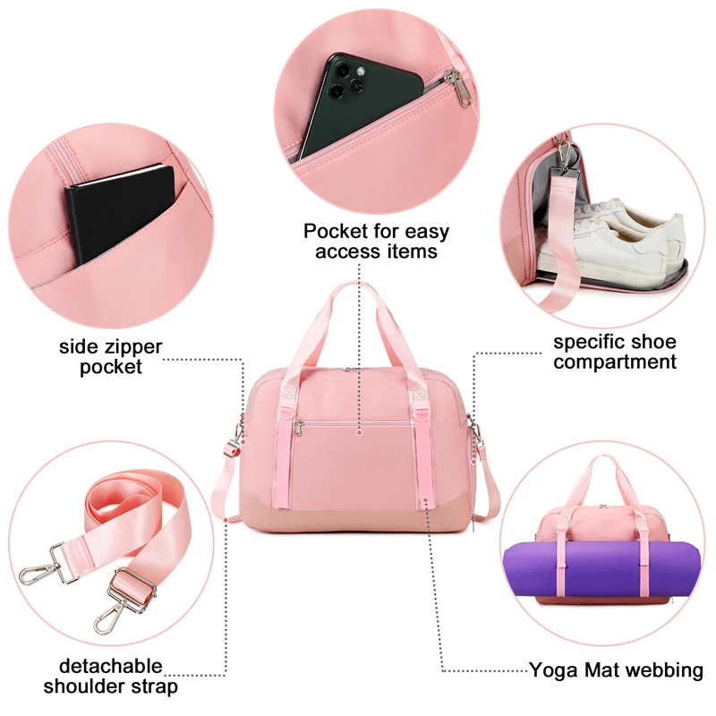 Custom Print Pink Fitness Gym Kids Sports Tote Weekender Travel Duffle Bags for Women