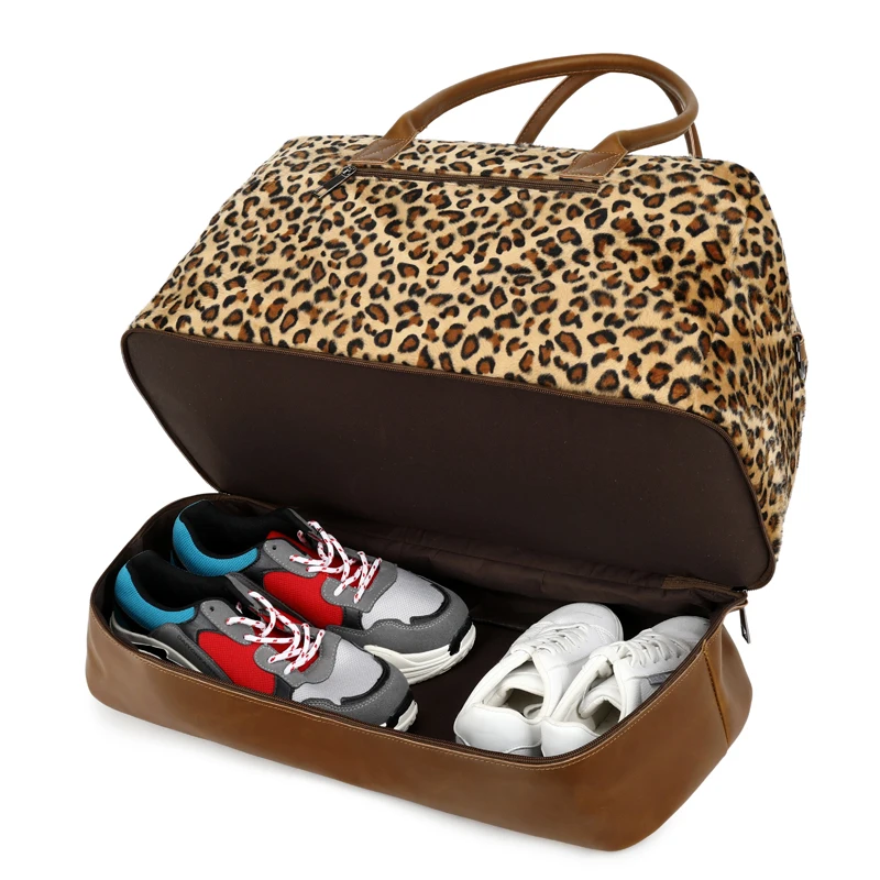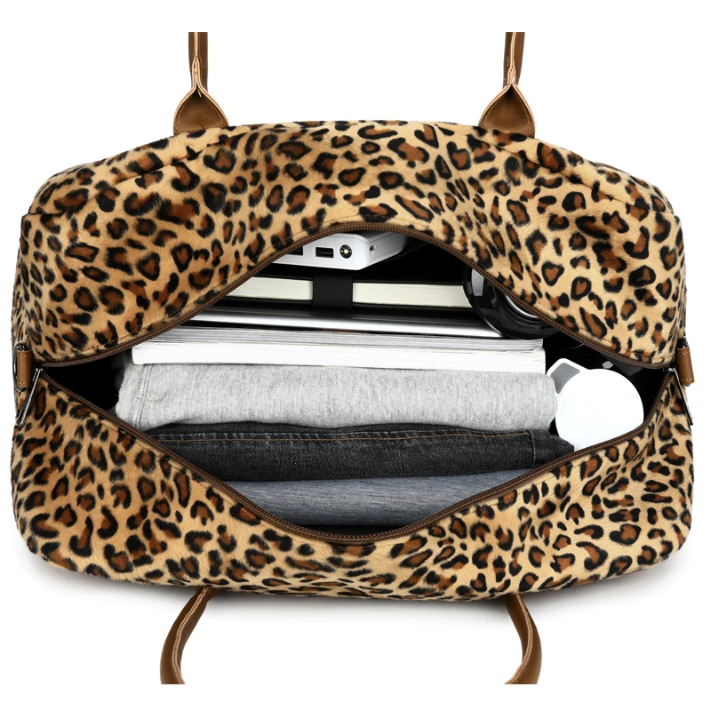 Custom Large Ladies Tote Bag Zippered Overnight Weekend Travel Duffle Gym Bag Sport Leopard Backpack Outdoors
