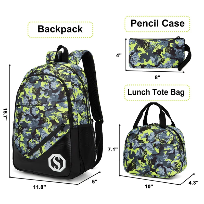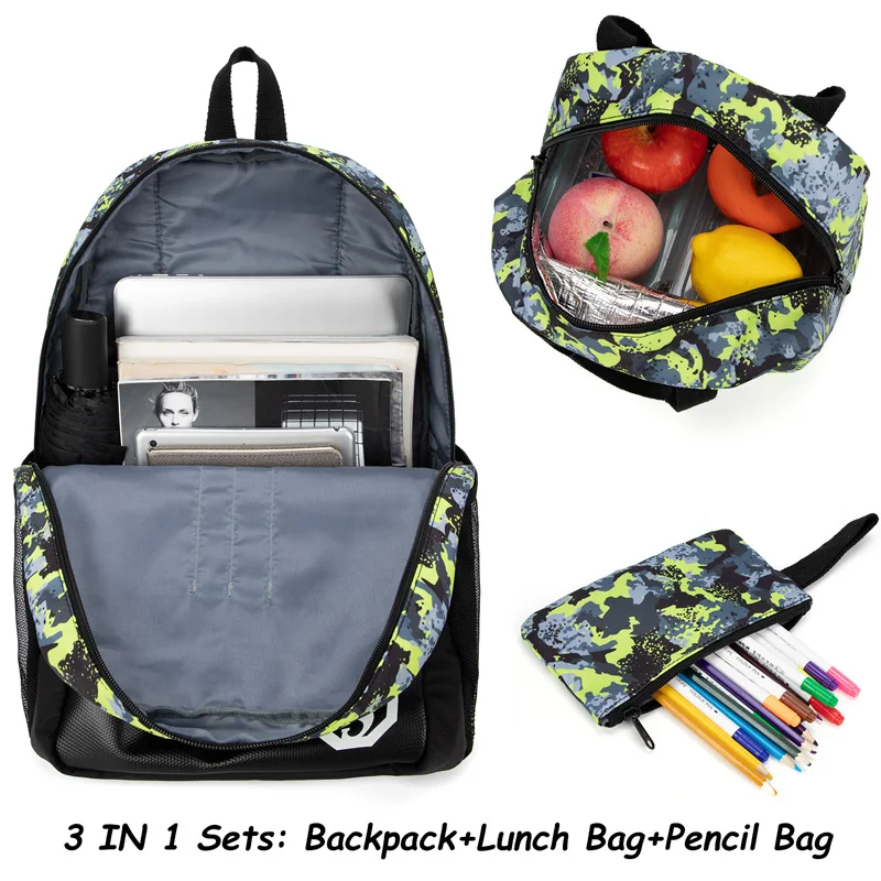 New Arrival Student Teenagers Kids Book Boys School Backpack Bags with Lunch Box