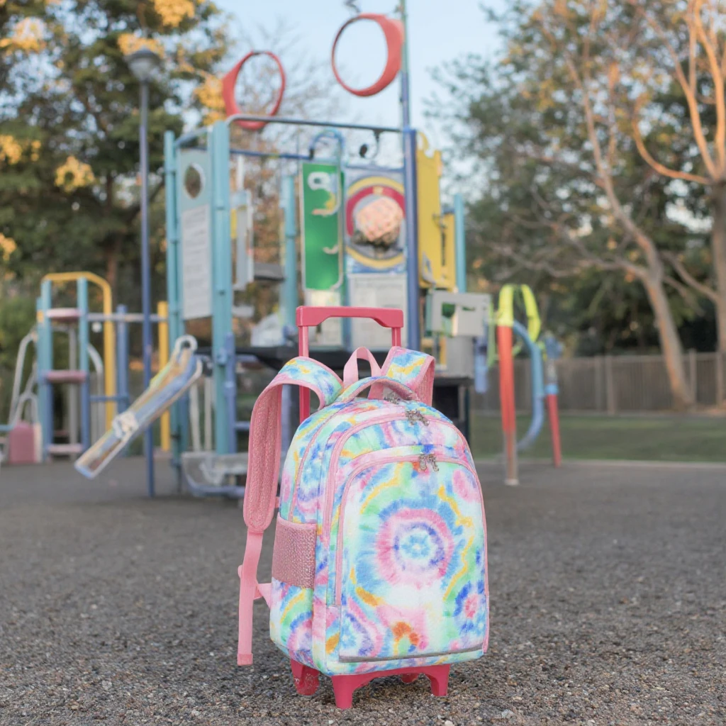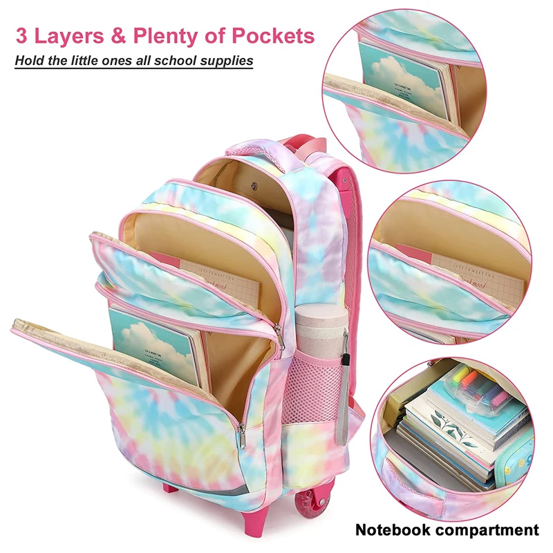 New Arrival Books Children Girls Kids Trolley School Backpack Bag with Wheel