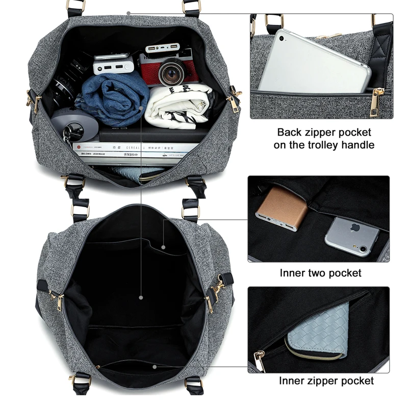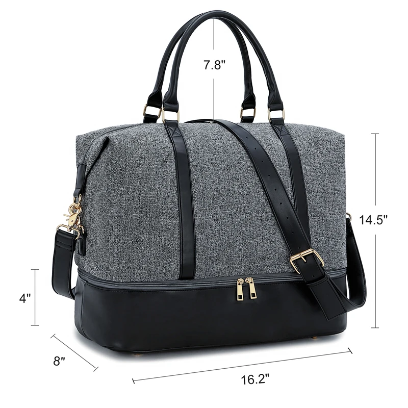 Custom Women Tote Weekender Travel Overnight Duffle Bag with Shoe Compartment