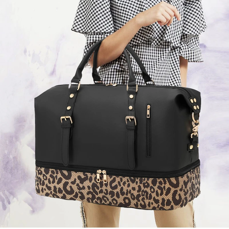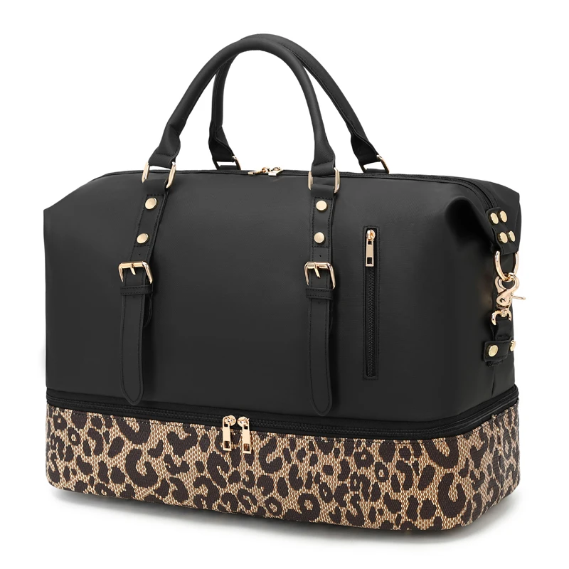 Custom Logo Fashion Women Weekender Overnight Travel Duffle Bag With Shoe Compartment