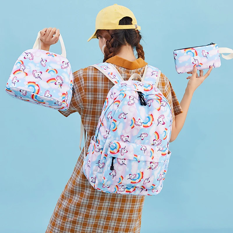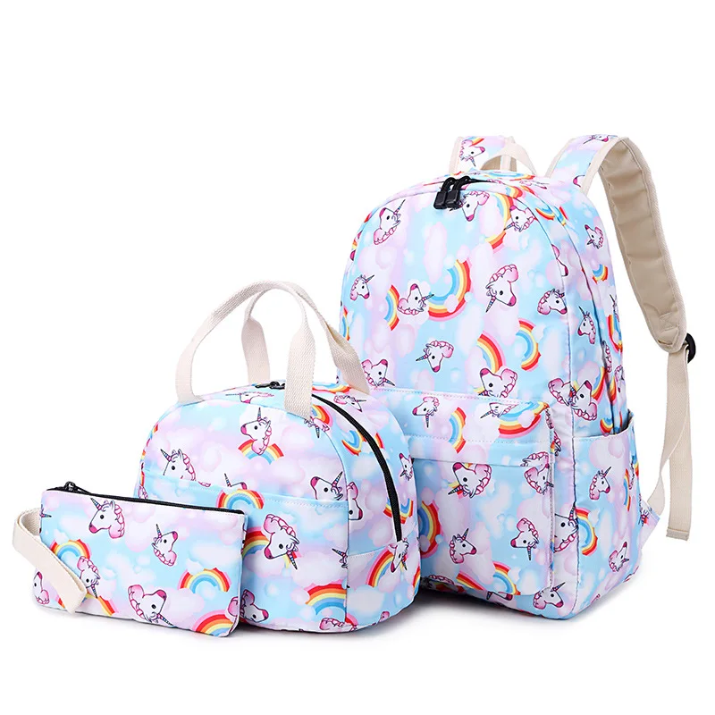 Custom logo unicorn Children Teenager Girls Travel Kids Backpack School Bags Set
