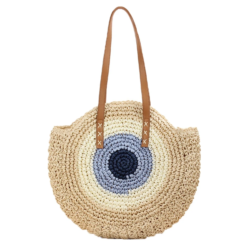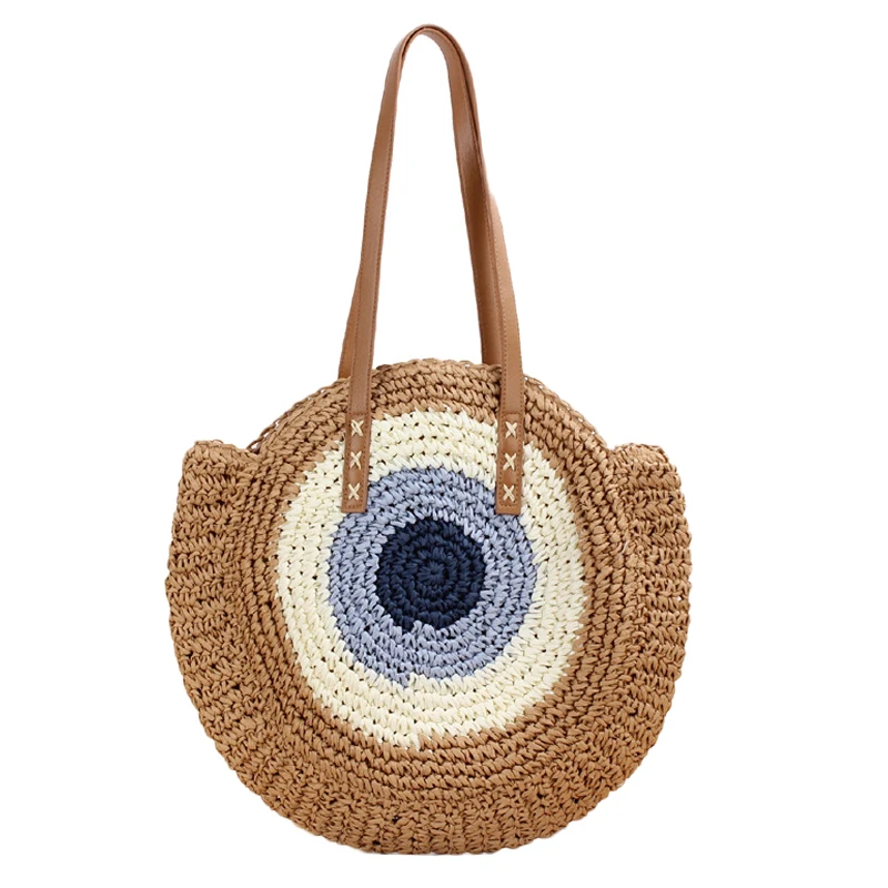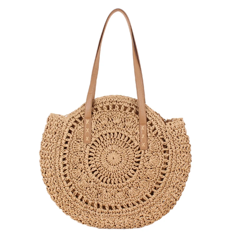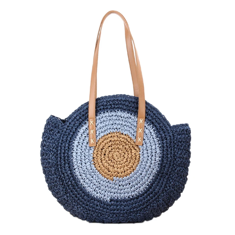 Vintage Woven Straw Stripe Round Ladies Women Tote Summer Beach Bag