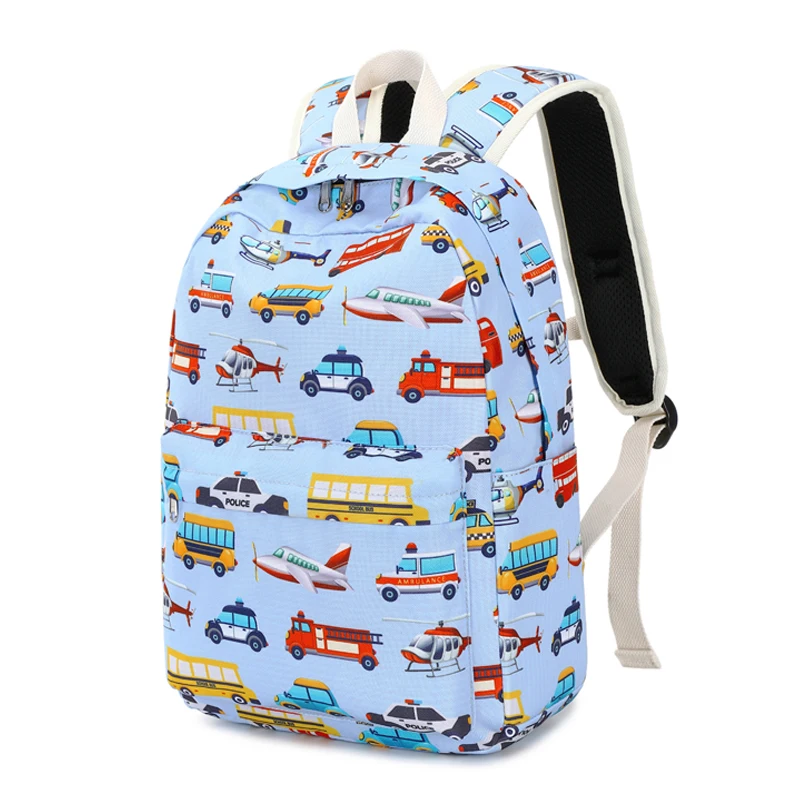 New Cartoon Character Car Pattern Blue Lightweight Child Boys Kids Book Bag School Bags Kindergaretn Preschool Backpack