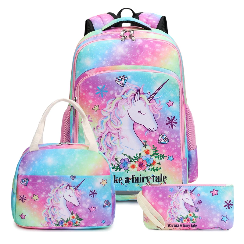 New Design Cute Unicorn Girls Child Kids School Bags Backpack With Lunch Box