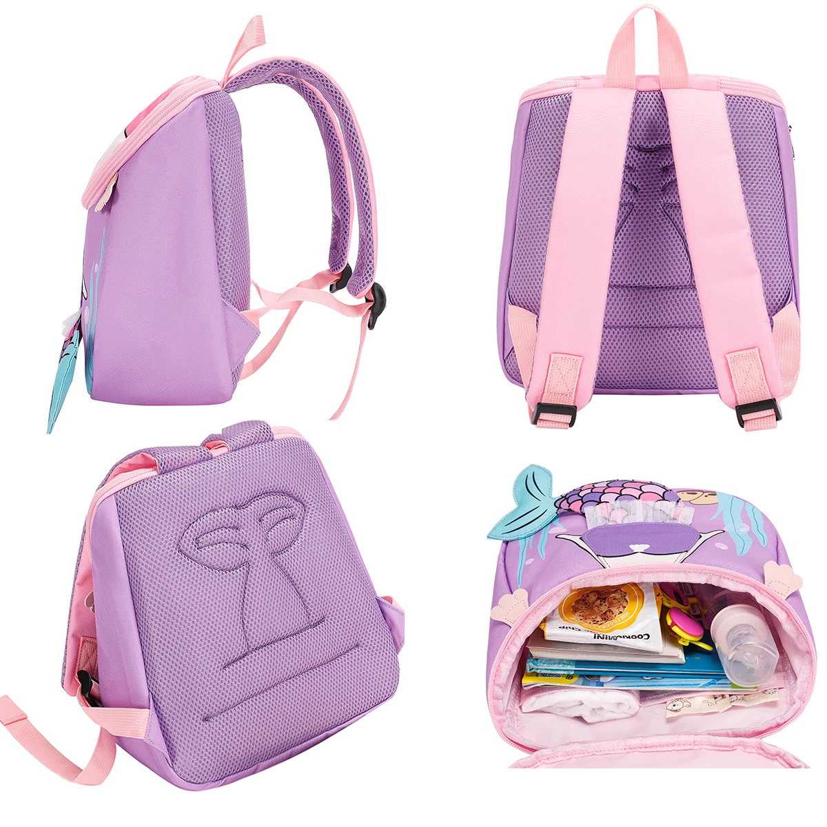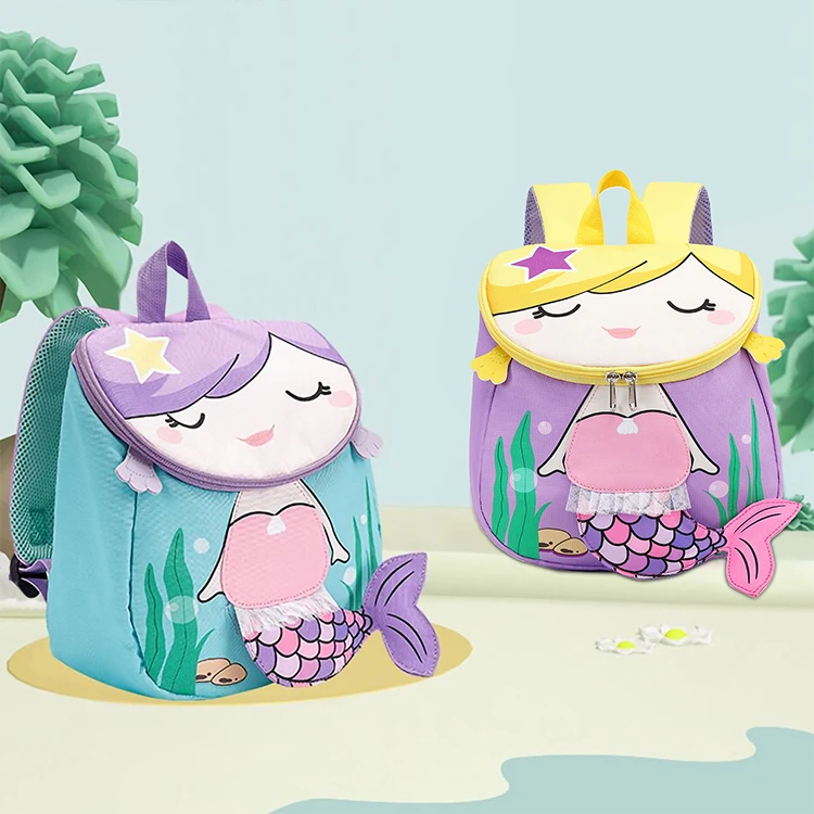 OEM Custom 3D Cute Child Girls Cartoon Mermaid Purple Kids Backpack Toddler Preschool Kindergarten for School Backpack
