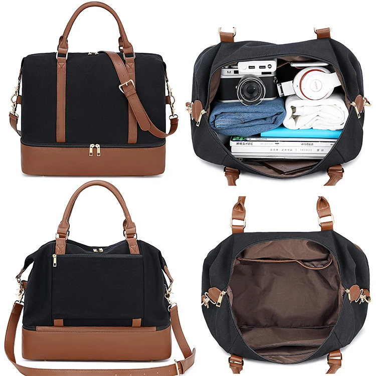 Custom Weekender Overnight Bag Canvas PU Shoes Compartment Carry on Bag Travel Tote Duffel Bag for Women OEM Fashion Unisex Trip