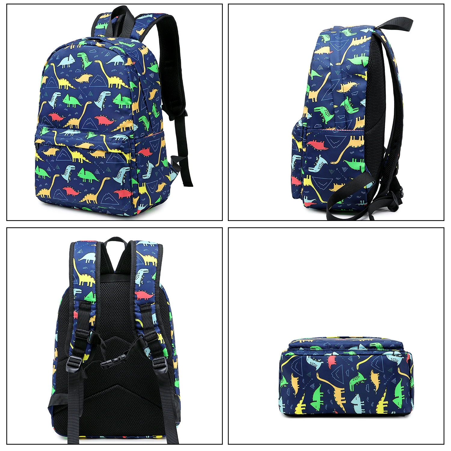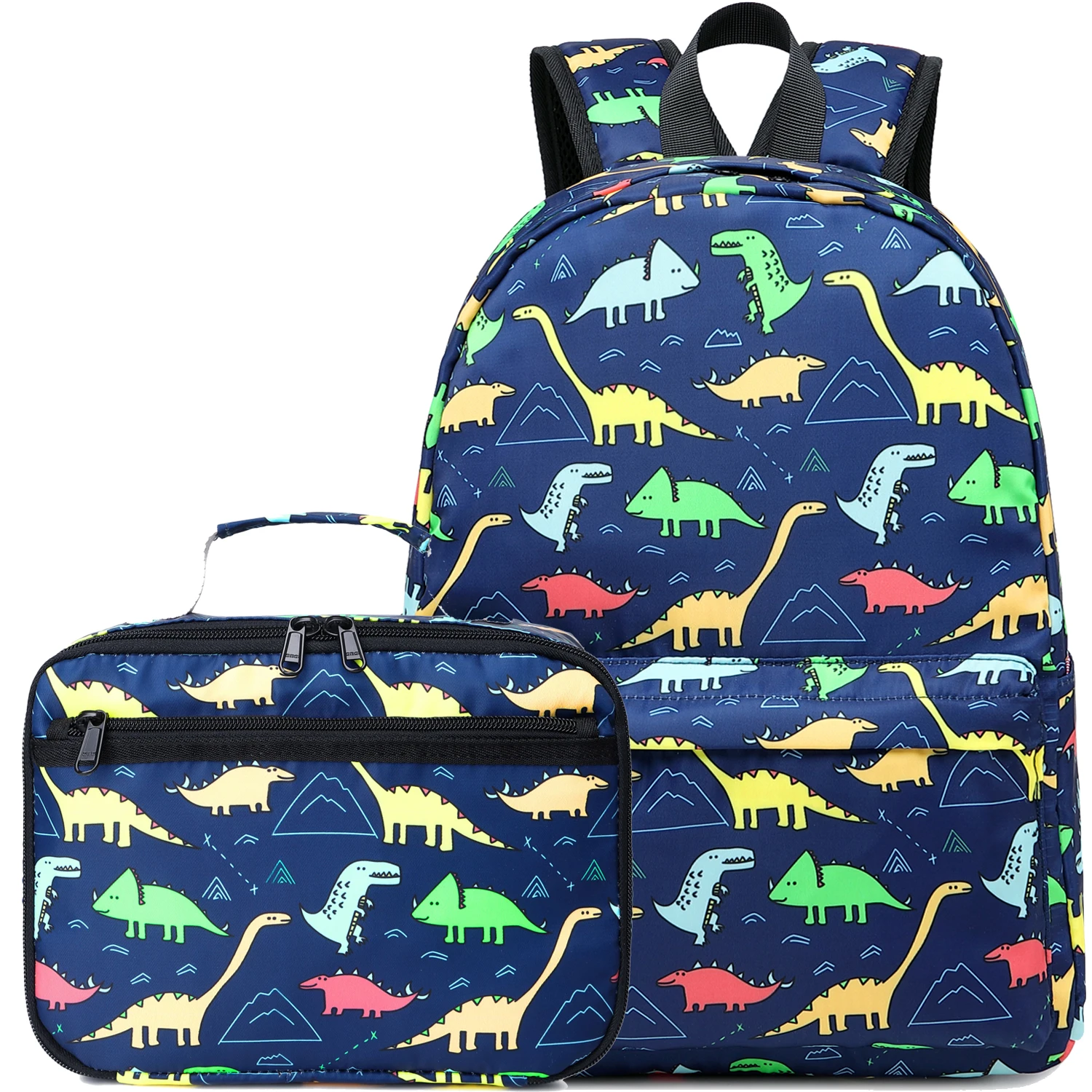 Dinosaur School Boy Bag with Lunch Bag Oxford Waterproof Backpacks for Unisex
