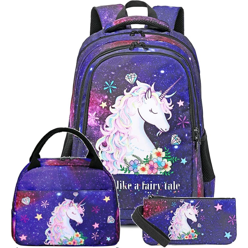 Factory Wholesale Unicorn Backpack Cute Kiddies School Bags with Lunch Bags School Bags for Girls