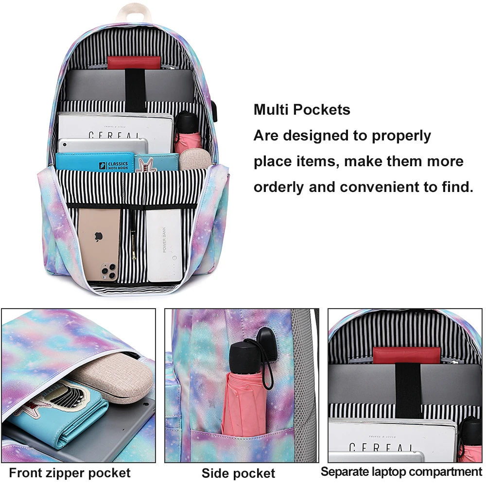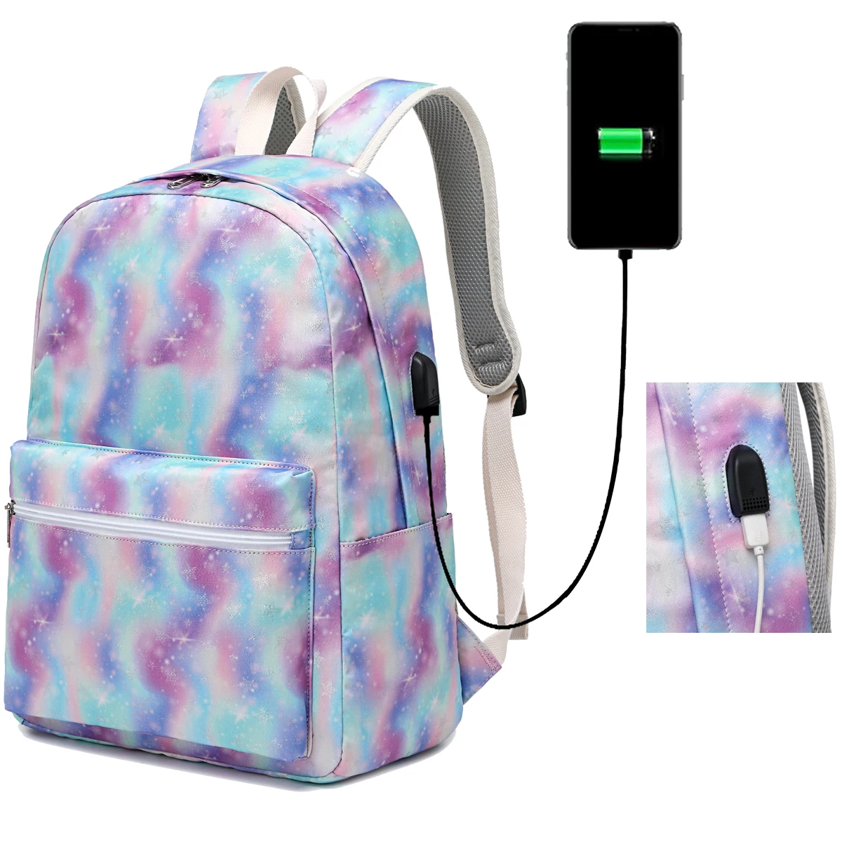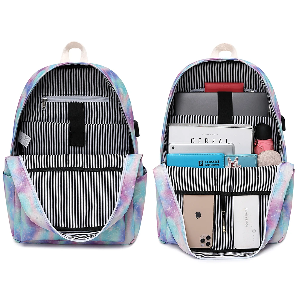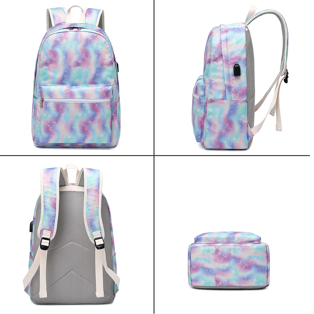 Custom Popular Tie Dye School Back Pack Wholesale Teenage USB Backpack Bookbags Mochilas School Bag