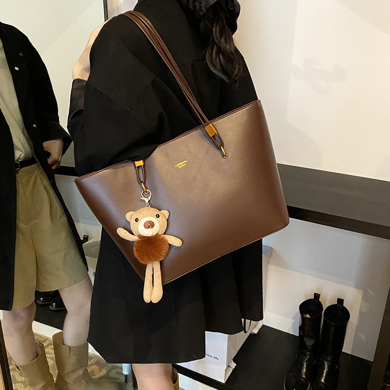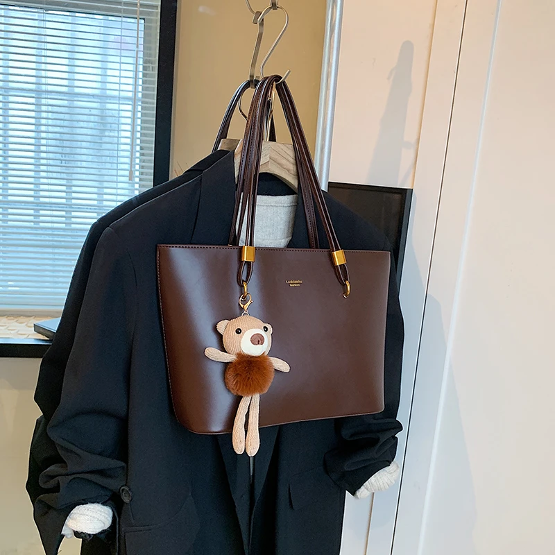 Bear Pendant Decoration Women's Shoulder Bag Large Capacity Crossbody Bags Brown Messenger Bag High Quality Handbag for Women