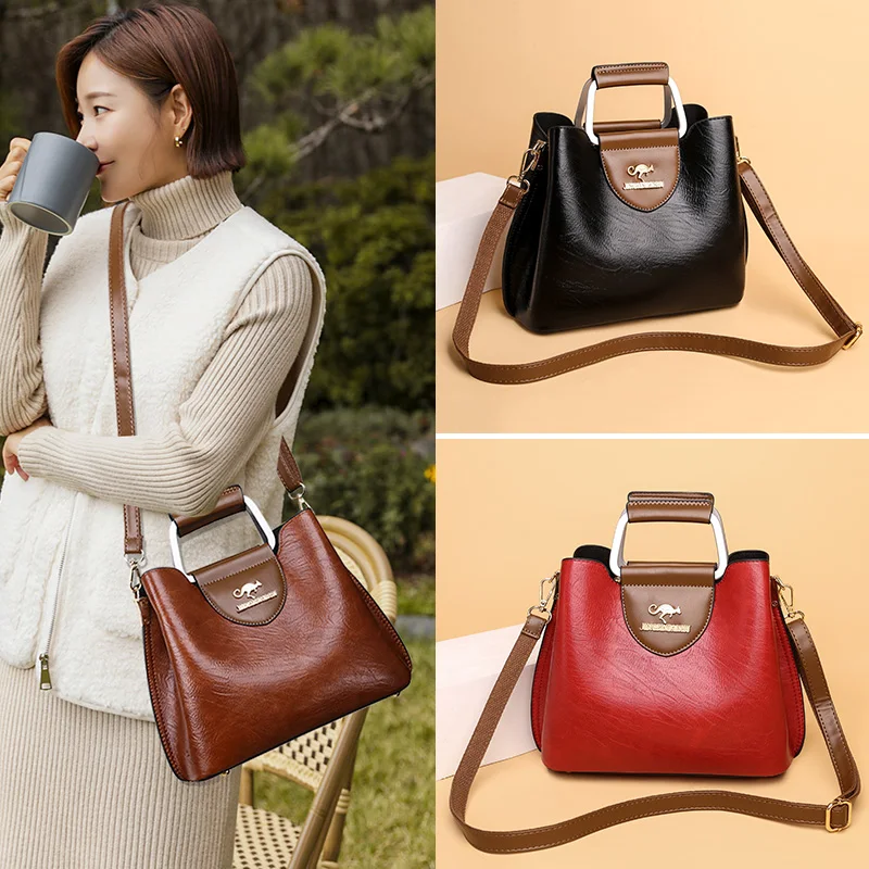 Designer Vintage Popular Ladies Women Crossbody Shoulder Hand Bags Fashion Casual Large Capacity Cowhide Leather Bucket Bag 2026