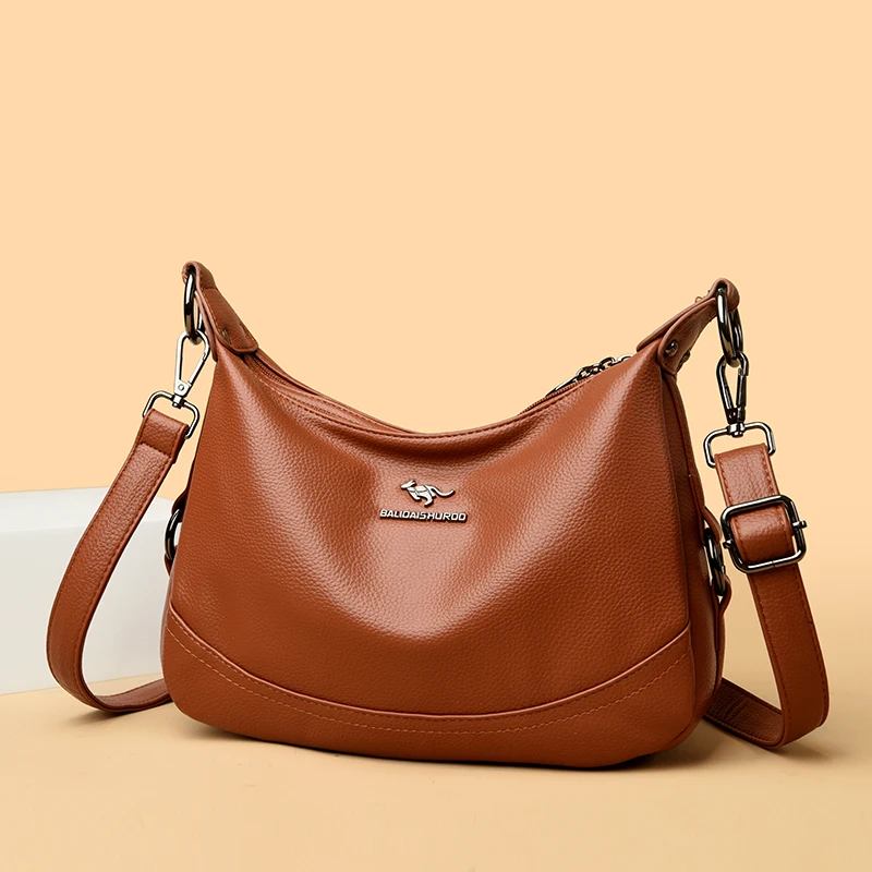 High Capacity Leather Multilayer Ladies Shoulder Handbags Stylish Women Tote Satchel Purse With Strap