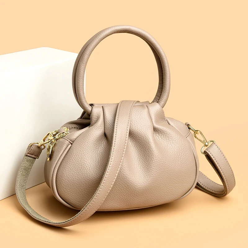 Designer Vintage Popular Ladies Women Crossbody Shoulder Hand Bags Fashion Casual Large Capacity Cowhide Leather Bucket Bag 2026